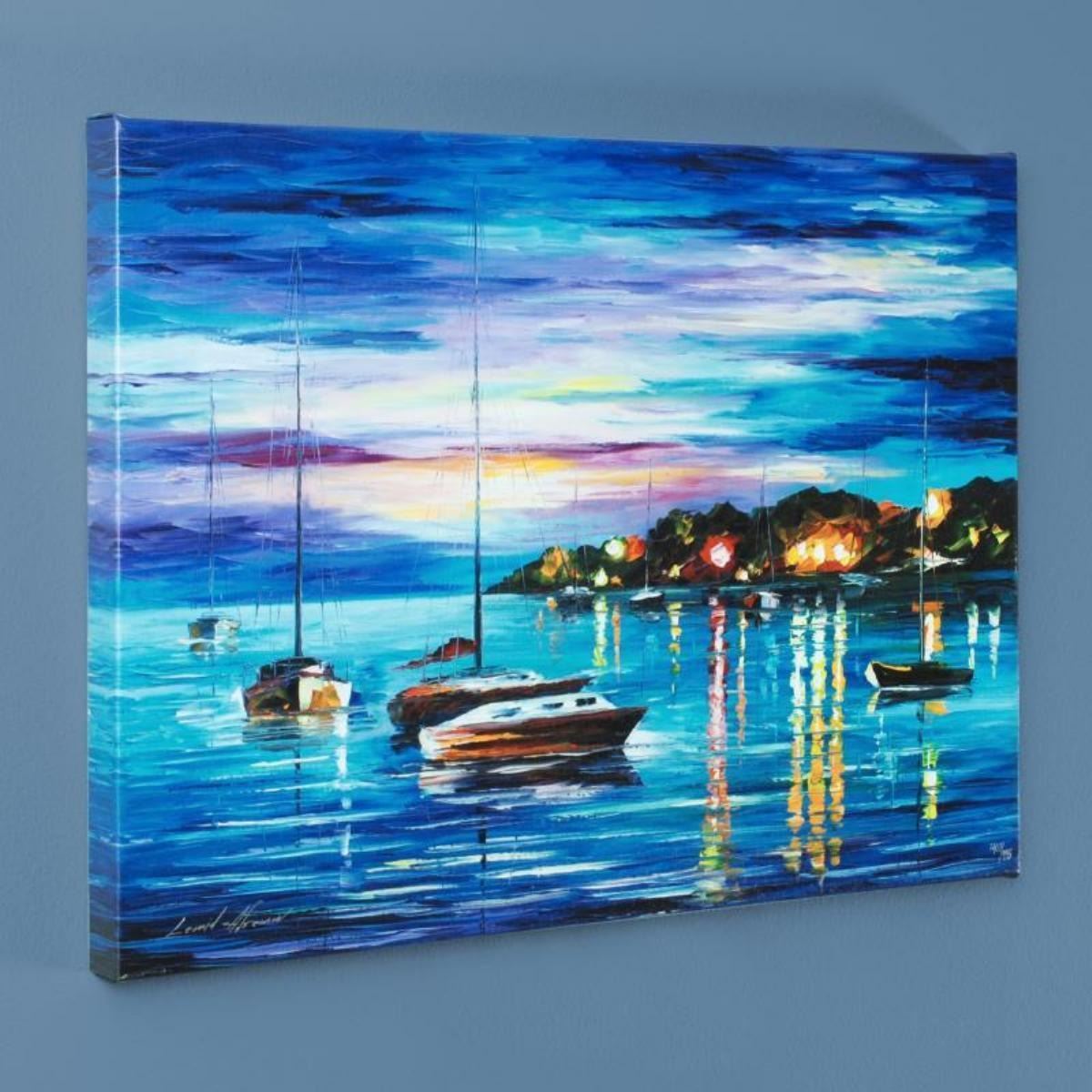 Out All Night by Afremov (1955-2019). Leonid Afremov's (1955-2019) masterful use of color and texture make his paintings unique collectibles that are sure to brighten any wall. "Out All Night" is a limited edition giclee on canvas. The piece is numbered and bears the artist's authorized signature. This piece comes gallery wrapped. Includes Letter of Authenticity. Measures approx. 24" x 18" (image). This item requires special handling and may have a longer than usual turnaround.