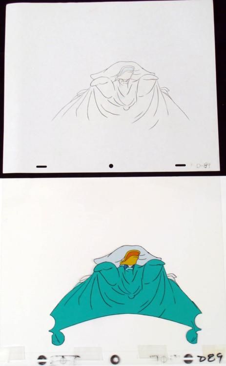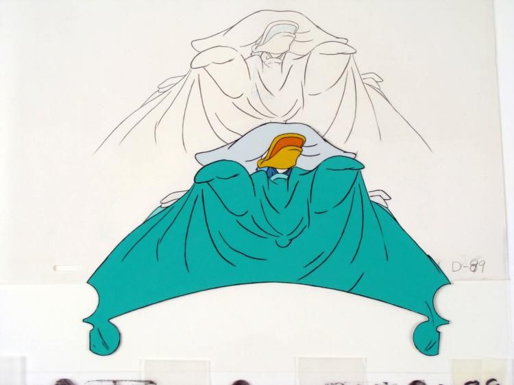 Donald does not want to get out of bed * * * * * Original Animation Cel & DrawingMedium: Hand painted acetate celDetails: Animation notations and peg holes * * Original "rough" animation drawing, in non-photo blue and black pencil * * Size of cel: 10 1/2 x 12 1/2 inchesSize of drawing: 10 1/2 x 12 1/2 inches * * Condition: Very good * This is an original hand-painted cel set-up used in the production of the "Walt Disney Shows." Each one-of-a-kind set-up represents a slight change in position of the characters. When individually photographed and projected in rapid succession, the images appear * to move. To created production cels, the original animator's drawing is transferred onto an acetate cel (by hand-inking and/or photo copying). The cel is then hand-painted on the reverse side. * * * * * Traditional animation is a multi-step process which includes various types of art techniques. Drawings are a key part of the process, in which the animator creates the design and movement of the characters. Drawings are then transferred onto acetate cels * (by hand-inking and/or photo copying) to create a production cel, which is then hand painted on the back side, using paint colors chosen and approved by the creator of the series.