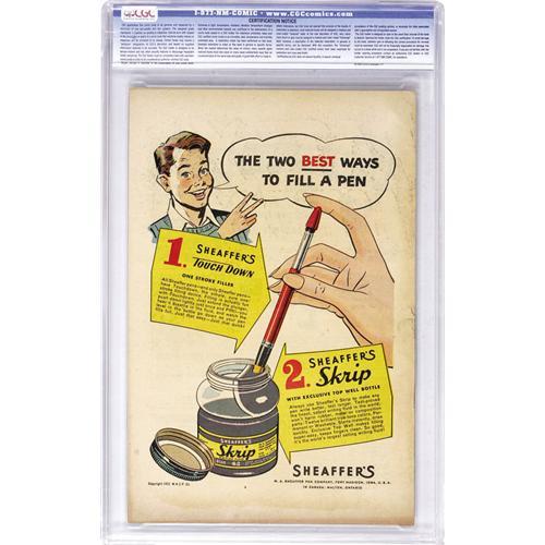 50. Since we cannot examine encapsulated notes or comics, they are sold "as is" without our grading opinion, and may not be returned for any reason. Auctioneer shall not be liable for any patent or latent defect or controversy pertaining to or arising from any encapsulated collectible. In any such instance, purchaser's remedy, if any, shall be solely against the service certifying the collectible.