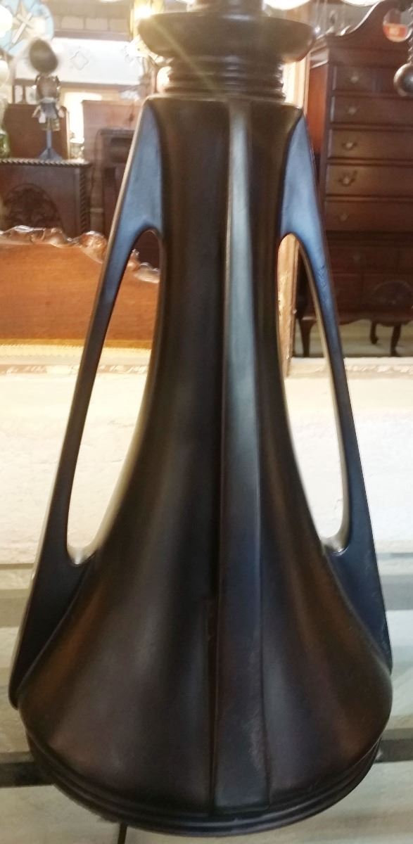 Estate & Out of Production Quoizel Stained Jade Glass on Resin Base Lamp with Arm Handles