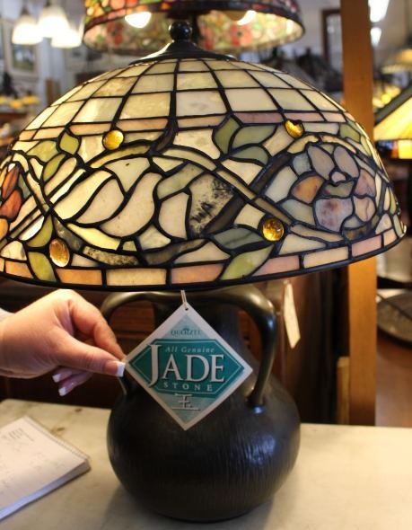 Out of Prod.Quoizel Stained Jade Glass on Resin Base Lamp