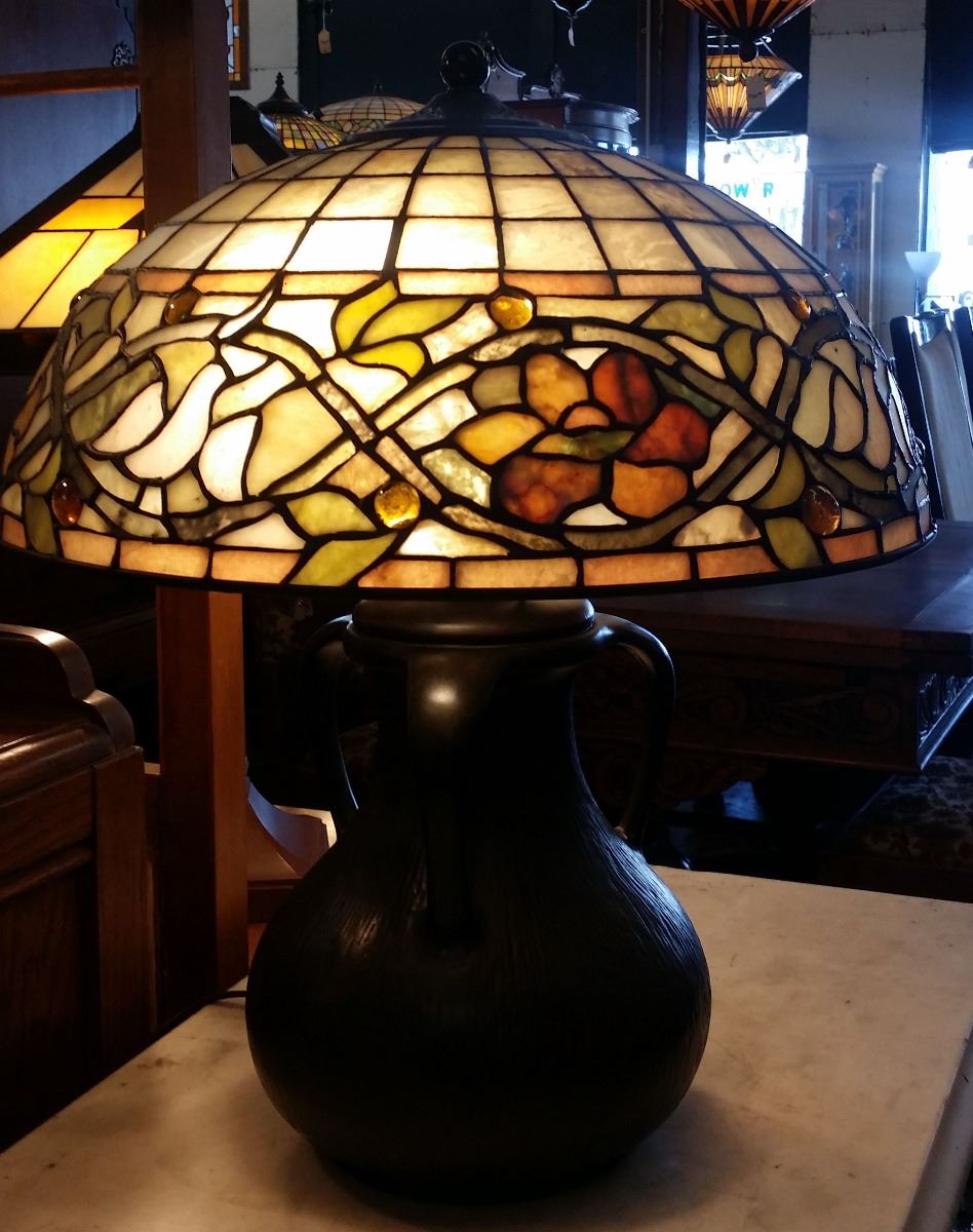This one is special because it has been "Out of Production" for at least a decade and Made of by the re-known brand Quoizel Collectibles making authentic Tiffany reproductions meticulously handcrafted using designs from the turn of the century. Quoizel, the creator of a Collection of Stained Glass Lamps & Chandeliers in the Famous Tiffany Style by Quoizel started in 1930 in New York, and then relocated to Charleston, SC & is still a privately owned family operated business.