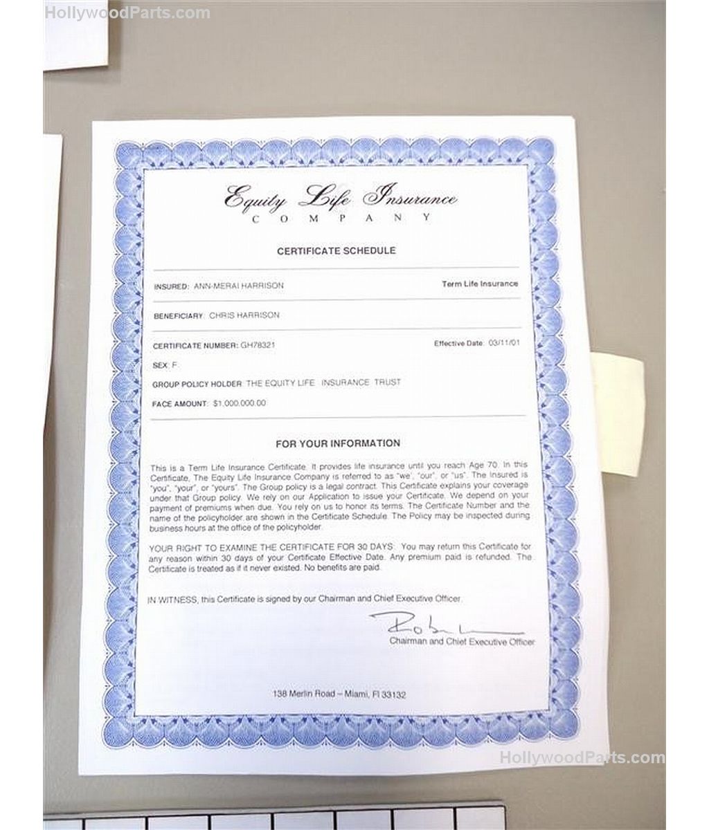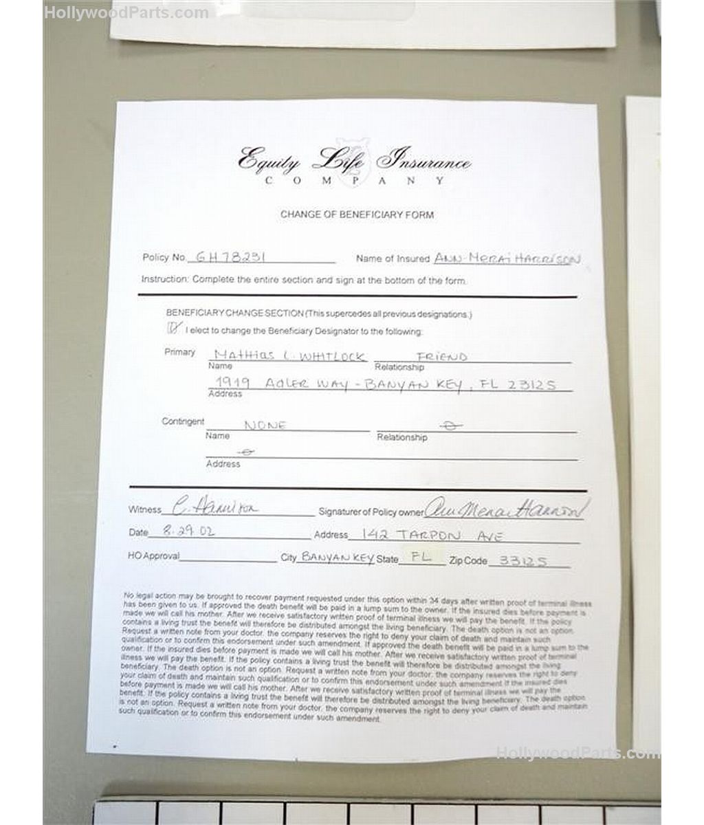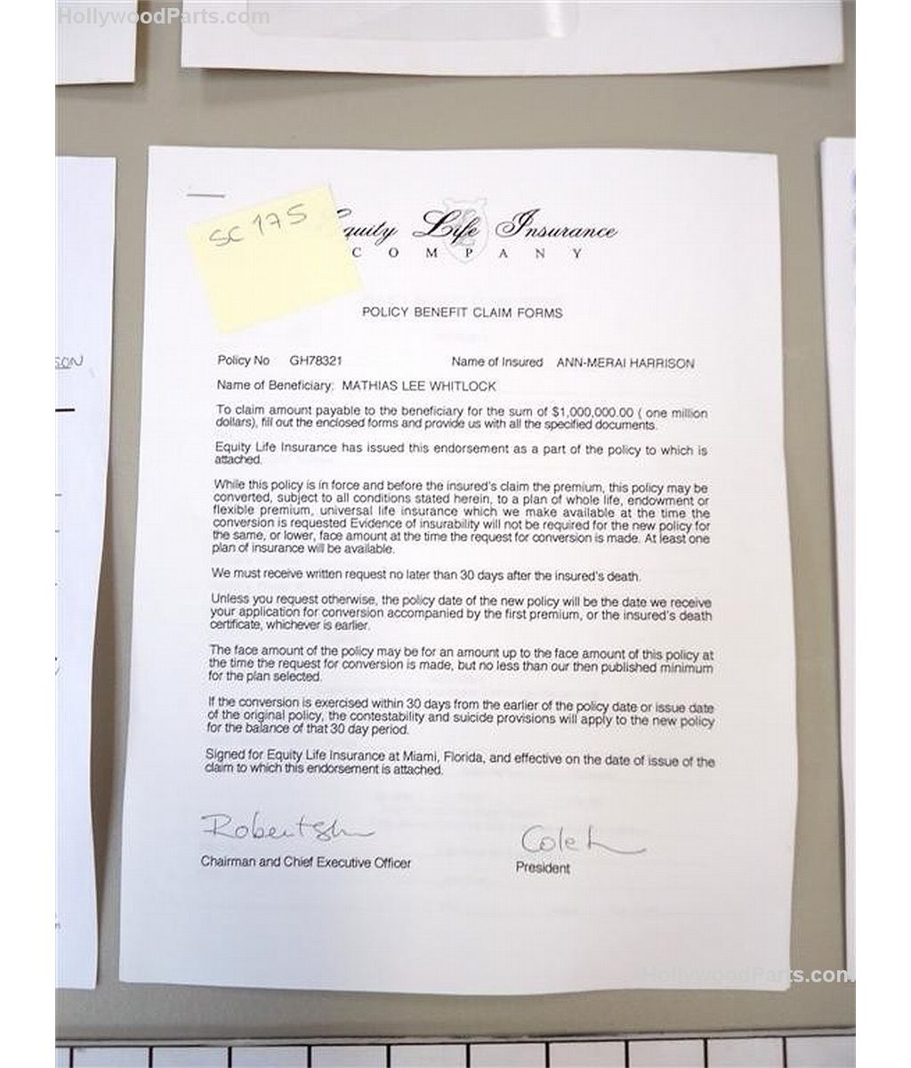 Out of Time Prop Ann (Sanaa Lathan) Insurance Forms MGM 168150 Box 788