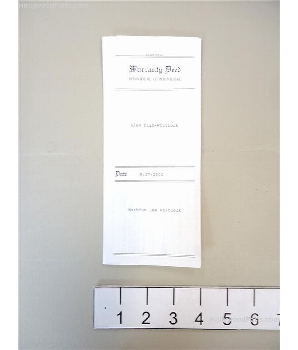 Out of Time Prop Matt Lee Whitlock (Denzel Washington) Matt's Personal Papers. Deed and phone message receipts. MGM 168139 Box 788