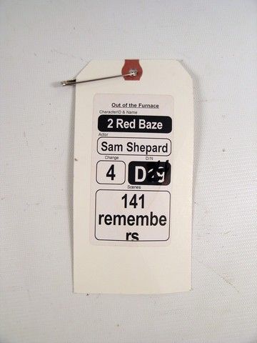 Out of the Furnace - Gerald 'Red' Baze (Sam Shepard) screen worn, hero, grey heavy cotton long sleeve button front 'Cabela's' shirt, (size L) and dark blue denim 'Wrangler' jeans. (size 34) Includes wardrobe tag!
