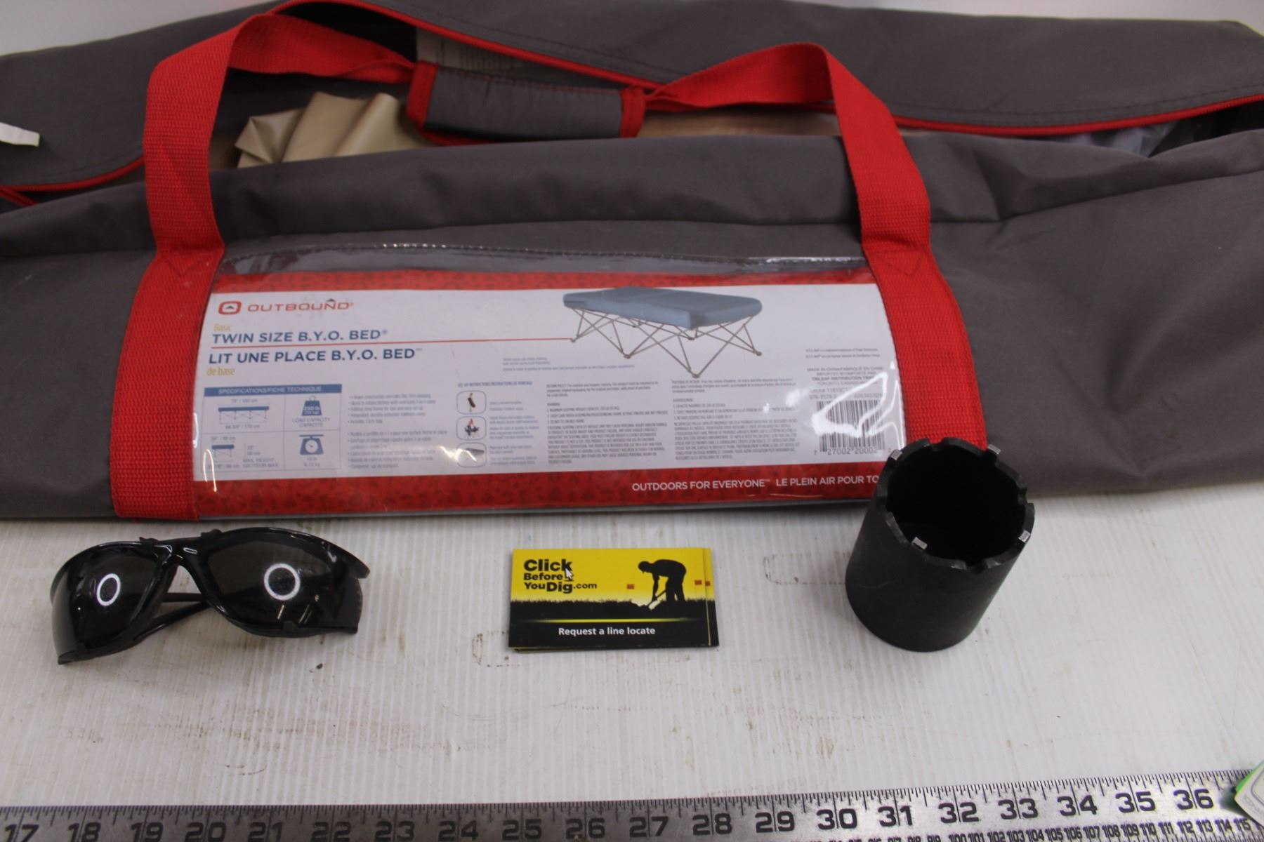 Outbound Twin Size BYO Bed with Tote - 73" x 39" Unfolded, Circular Drill Bit, Sunglasses