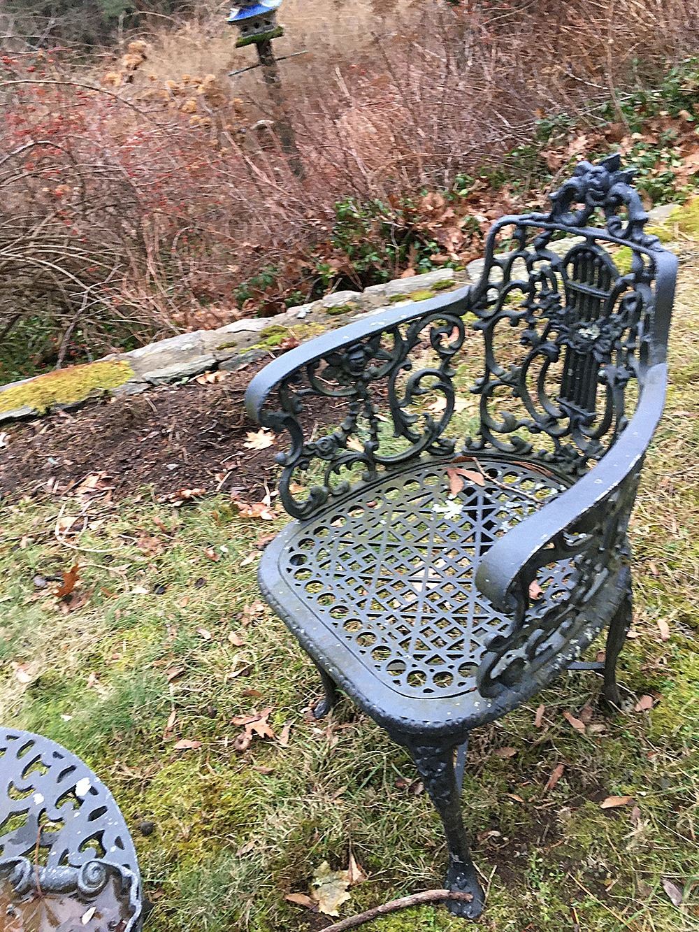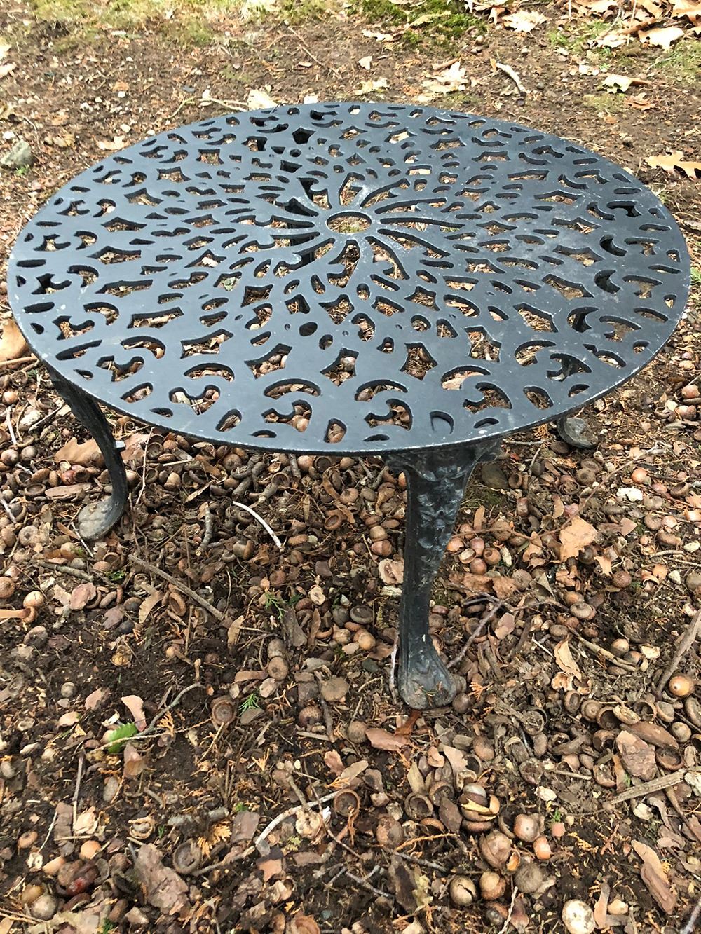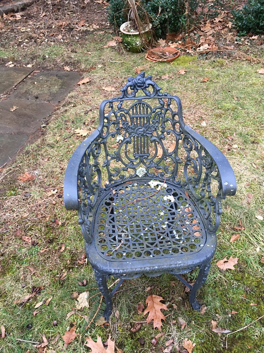 Outdoor Garden Set includes table and 3 arm chairs. Table measures approx. 25.5 inches wide, chairs measure approx. 21 inches wide. pd