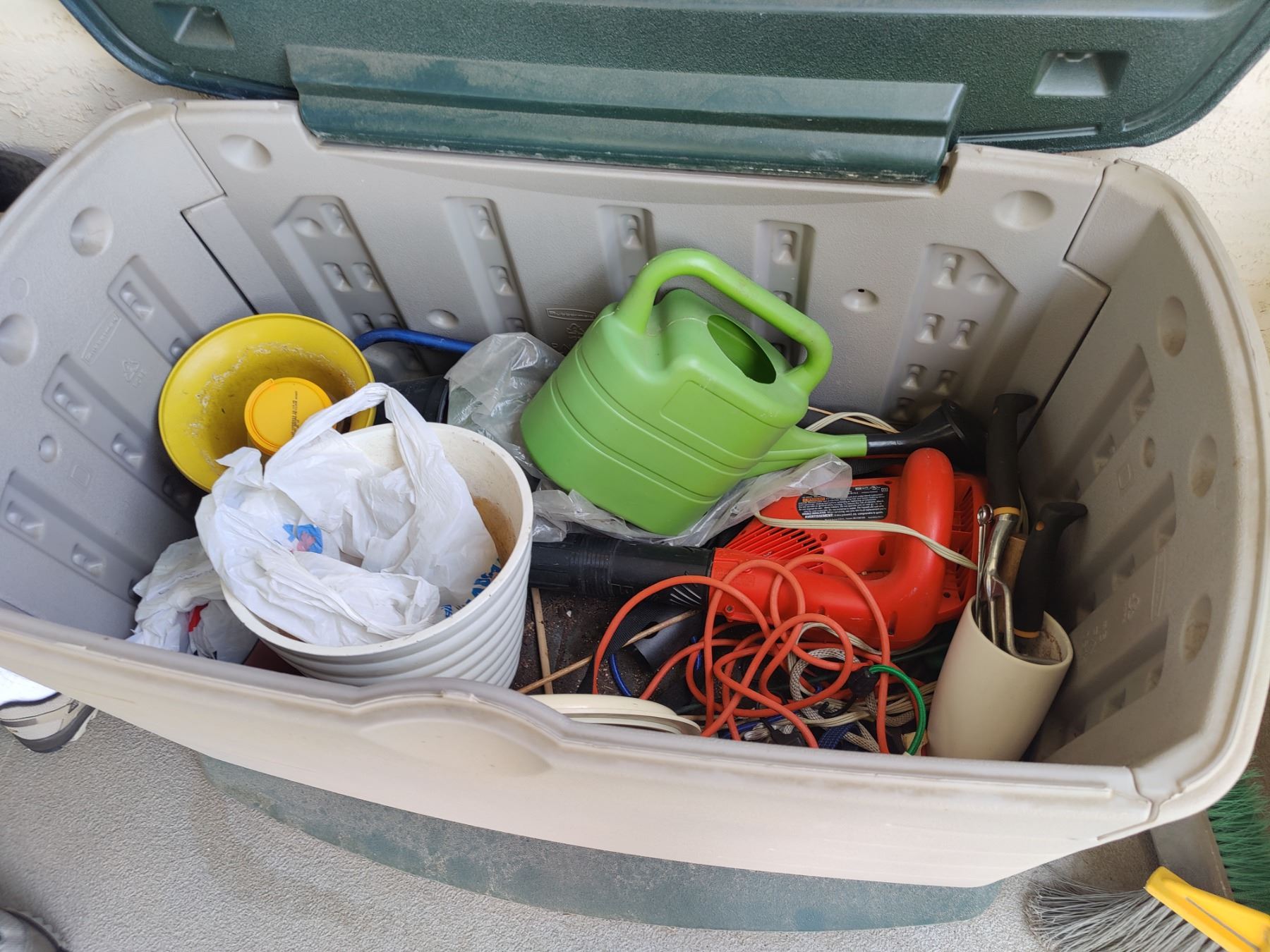 Tote is full of gardening supplies and outdoor living supplies