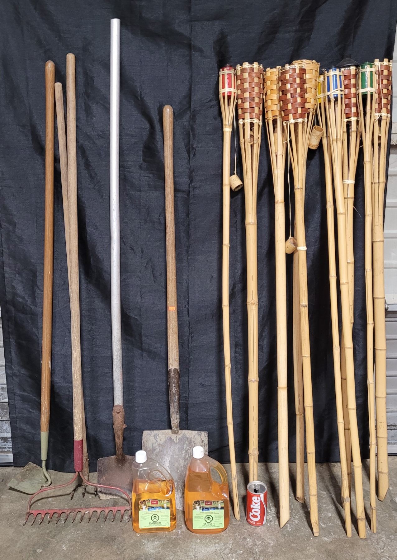 Outdoor Tiki Torches, Citronella Lamp Oil, & Garden Tools