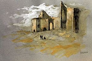 Watercolor & Ink Painting on Paper, bearing a signature, Size Approx. 14 x 11