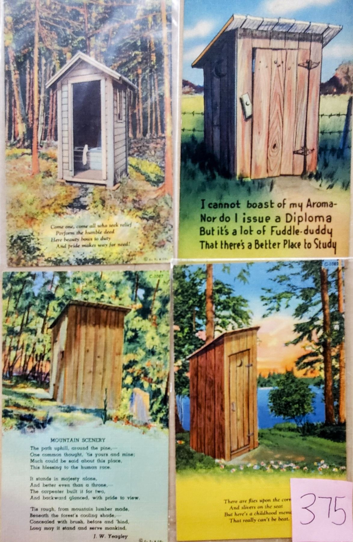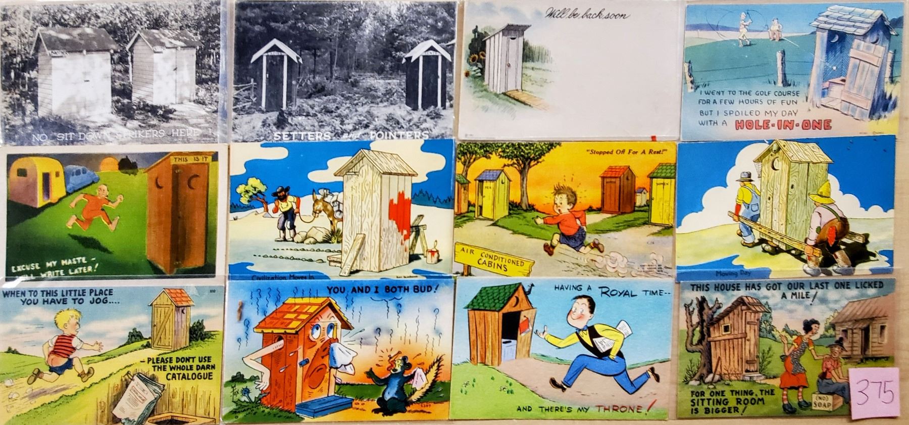 Over 125 cards of outhouses. Early to standard size chrome. Many comics.
