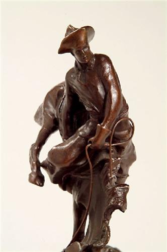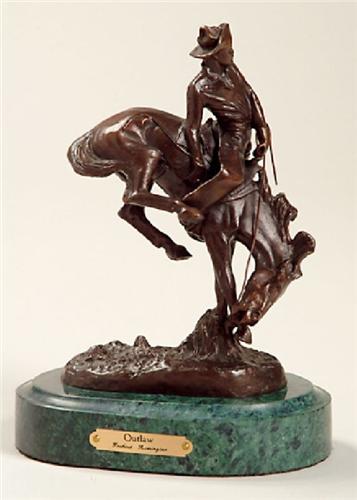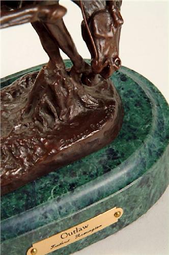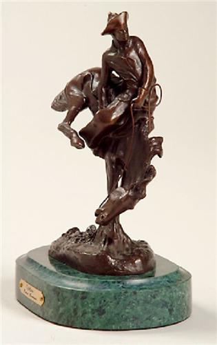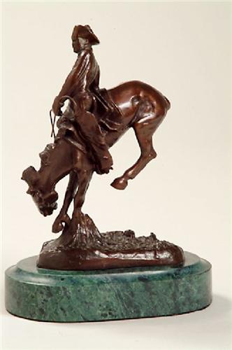 Remington, Frederic (American 1861 - 1909) Inspired by, bronze sculpture with green marble base, 6" by 9"