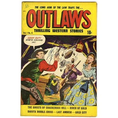<B>Outlaws #6 (D.S. Publishing, 1948) Condition: FN/VF.</B></I> Al McWilliams art. Overstreet 2007 FN 6.0 value = $45; VF 8.0 value = $85.<BR><BR><b>Shipping:</b> Comics - Unslabbed (<a target="_blank" href="http://www.heritageauctions.com/common/shipping.php">view shipping information</a>)