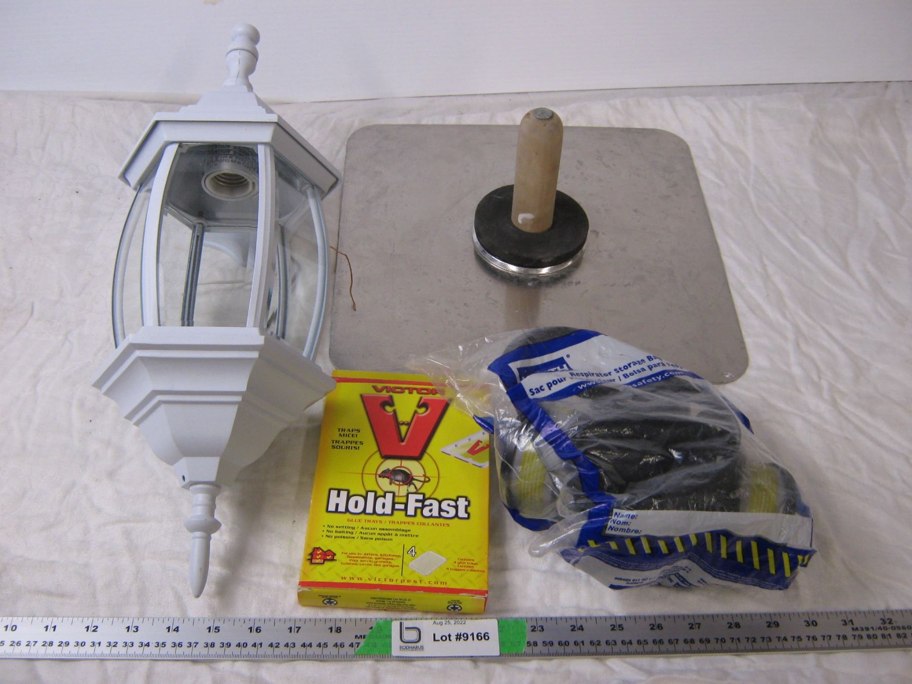 Outside Lamp, Respirator, Mouse Traps, and drywall tool