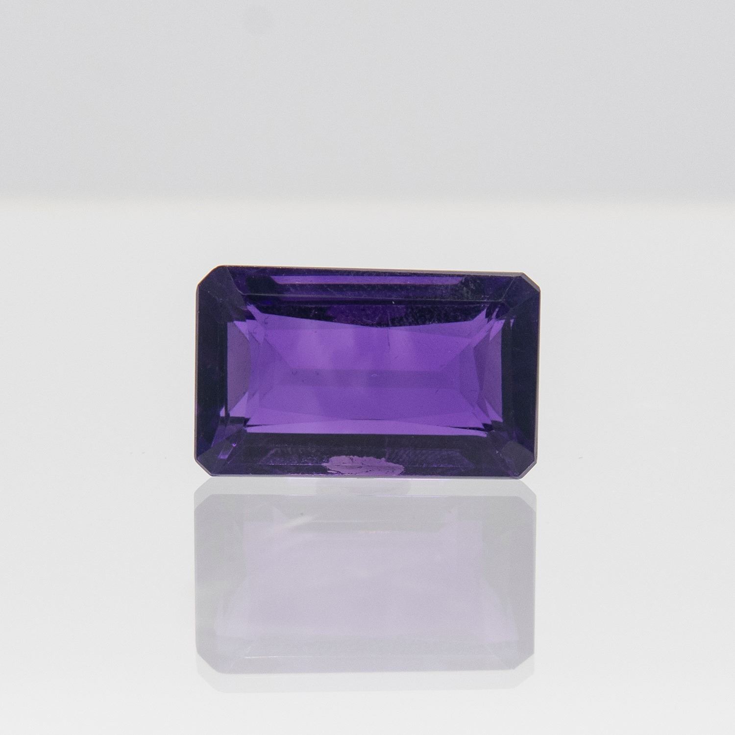 Outstanding CCS1 23.02 ct royal purple amethyst. Emerald cut. Near flawless. Vivid color saturation and fine luster. Heated.
