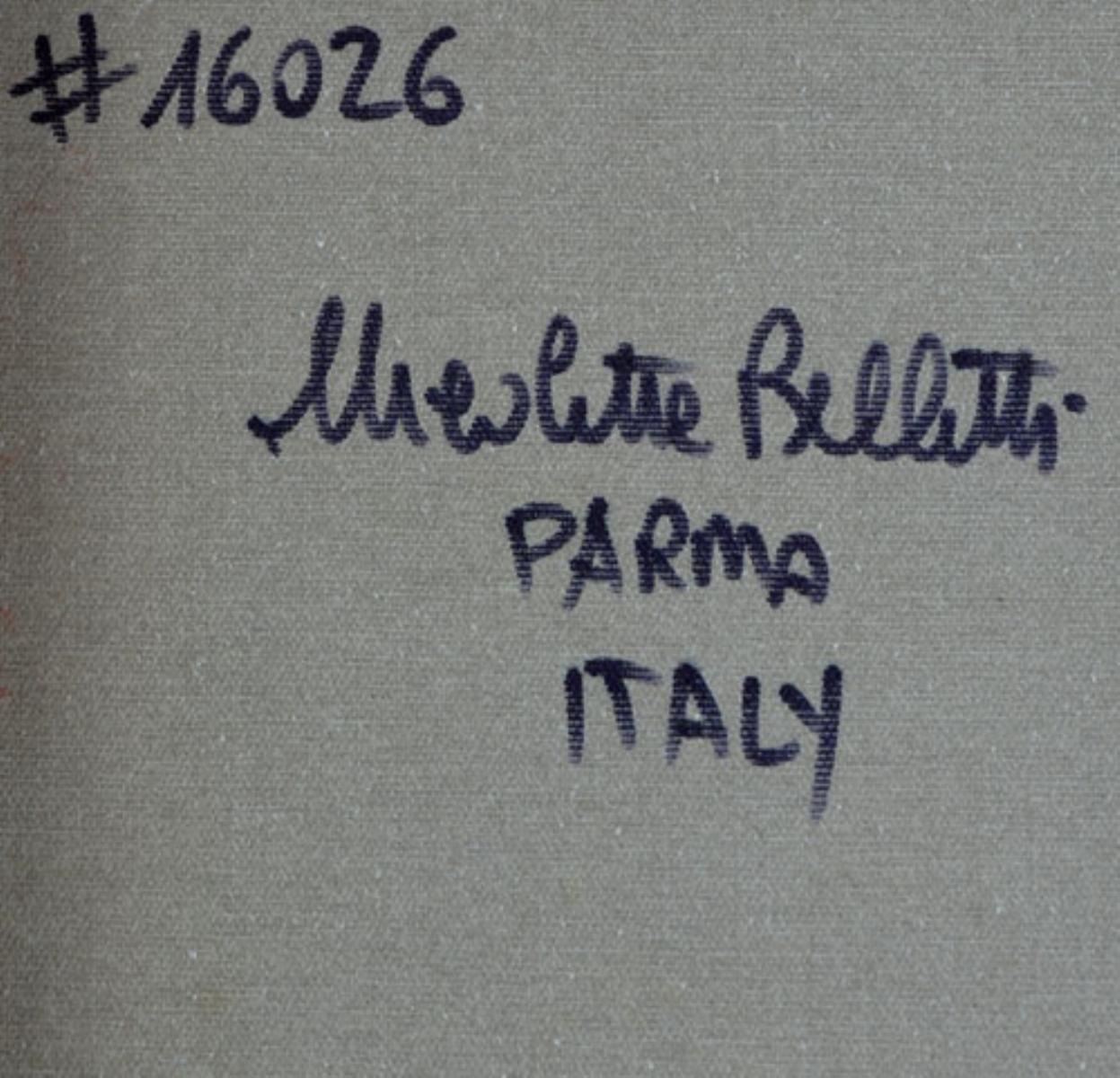 Artist: Nicoletta Belletti - Title: Three Love Birds - Medium: Original Mixed Media Canvas - Signature: This one-of-a-kind work is hand-signed by the artist at the bottom of the image - Image Size: Approximately 12 inches x 12 inches - Framed: Stretched and Ready to Hang or Framing - Details: This work comes with a Certificate of Authenticity - Biography: Nicoletta Belletti lives and works in Parma. An original artist, she has developed a personal technique in which the material has become substantial, and distinctive of her paintings. She creates her works using material acrylic on the table, spread with a spatula and with the addition in some cases of elements such as sand or stones. Portraits of people, animals, flowers, more recently the water and the sea, are the subjects of his works.