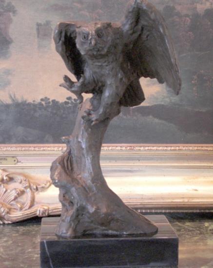 Spotted Owl, Bronze Sculpture, After Barye, 14"H x 8"W x6"D16 lbs This bronze sculpture was produced using the "Lost Wax" casting method. The"Lost Wax" Cast method is the most precise metal casting technique in existence, ensuring exquisite detail of the original host model which is usually sculpted in clay or wax. This "Lost Wax" casting method is an extremely labor intensive and expensive process, but the end results produce a Heirloom Quality Masterpiece!