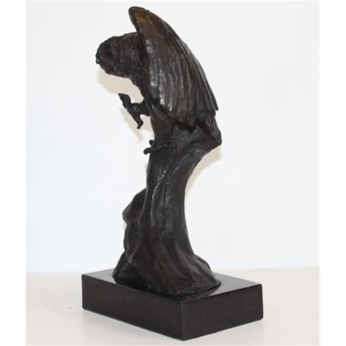 Spotted Owl, Bronze Sculpture, After Barye, 14"H x 8"W x6"D16 lbs This bronze sculpture was produced using the "Lost Wax" casting method. The"Lost Wax" Cast method is the most precise metal casting technique in existence, ensuring exquisite detail of the original host model which is usually sculpted in clay or wax. This "Lost Wax" casting method is an extremely labor intensive and expensive process, but the end results produce a Heirloom Quality Masterpiece!Antoine-louis Barye (1796 - 1875) Originally trained as a goldsmith, Antoine-Louis Barye served in Napoleon's army before studying sculpture and painting. He entered the Ecole des Beaux-Arts in 1818 and adapted the romantic-style subject matter of violent and majestic animals. After his crocodile-like sculpture entitled Tiger Devouring a Gavail, won a medal at the Salon of 1831, Barye became a successful and independent sculptor and painter. His animal sculptures competed at the Salon alongside the more traditional and revered human figures. In 1845, Barye began a foundry that produced smaller and more affordable bronze statues. He was appointed the keeper of plaster casts at the Louvre and professor of zoological drawing at the Musee National d'Histoire Naturelle, both in Paris. Elected to the Academie in 1868, Barye inspired a later generation of animal sculptors who called themselves the animaliers.