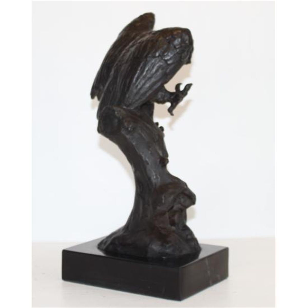 Spotted Owl, Bronze Sculpture, After Barye, 14"H x 8"W x6"D16 lbs This bronze sculpture was produced using the "Lost Wax" casting method. The"Lost Wax" Cast method is the most precise metal casting technique in existence, ensuring exquisite detail of the original host model which is usually sculpted in clay or wax. This "Lost Wax" casting method is an extremely labor intensive and expensive process, but the end results produce a Heirloom Quality Masterpiece!Antoine-louis Barye (1796 - 1875) Originally trained as a goldsmith, Antoine-Louis Barye served in Napoleon's army before studying sculpture and painting. He entered the Ecole des Beaux-Arts in 1818 and adapted the romantic-style subject matter of violent and majestic animals. After his crocodile-like sculpture entitled Tiger Devouring a Gavail, won a medal at the Salon of 1831, Barye became a successful and independent sculptor and painter. His animal sculptures competed at the Salon alongside the more traditional and revered human figures. In 1845, Barye began a foundry that produced smaller and more affordable bronze statues. He was appointed the keeper of plaster casts at the Louvre and professor of zoological drawing at the Musee National d'Histoire Naturelle, both in Paris. Elected to the Academie in 1868, Barye inspired a later generation of animal sculptors who called themselves the animaliers.