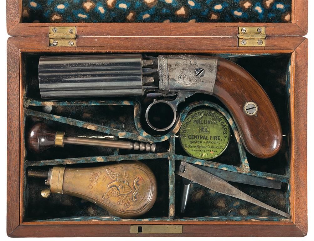 Outstanding Cased Blunt & Syms Percussion Pepperbox with Accessories