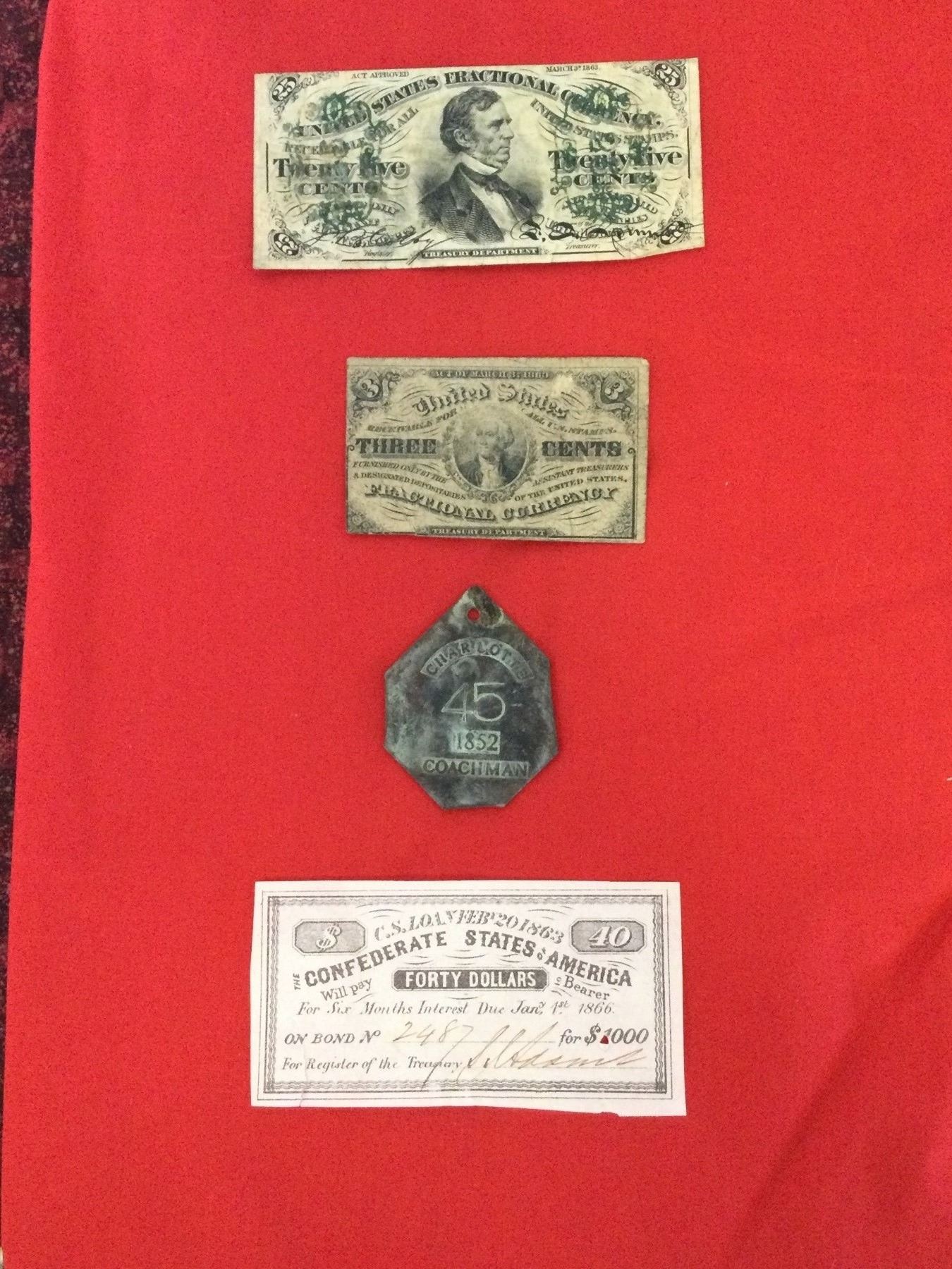 You are bidding on the entire collection, including civil war fractional currency and a very rare Slave Tag. A true highlight to your collection