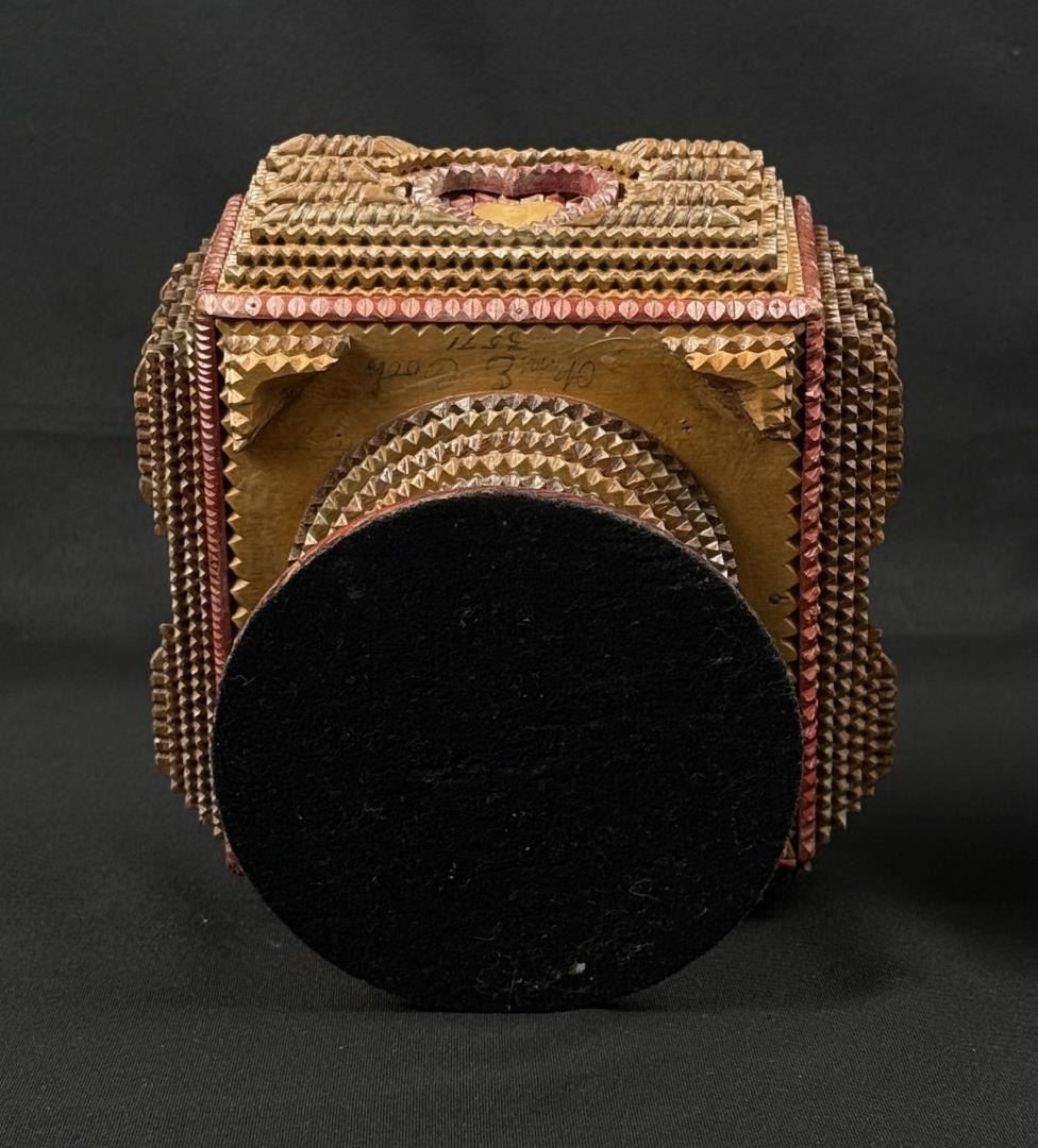 7 1/4" by 7 1/4" by 7". Signed on the bottom as shown. One of the finest examples we have come across.