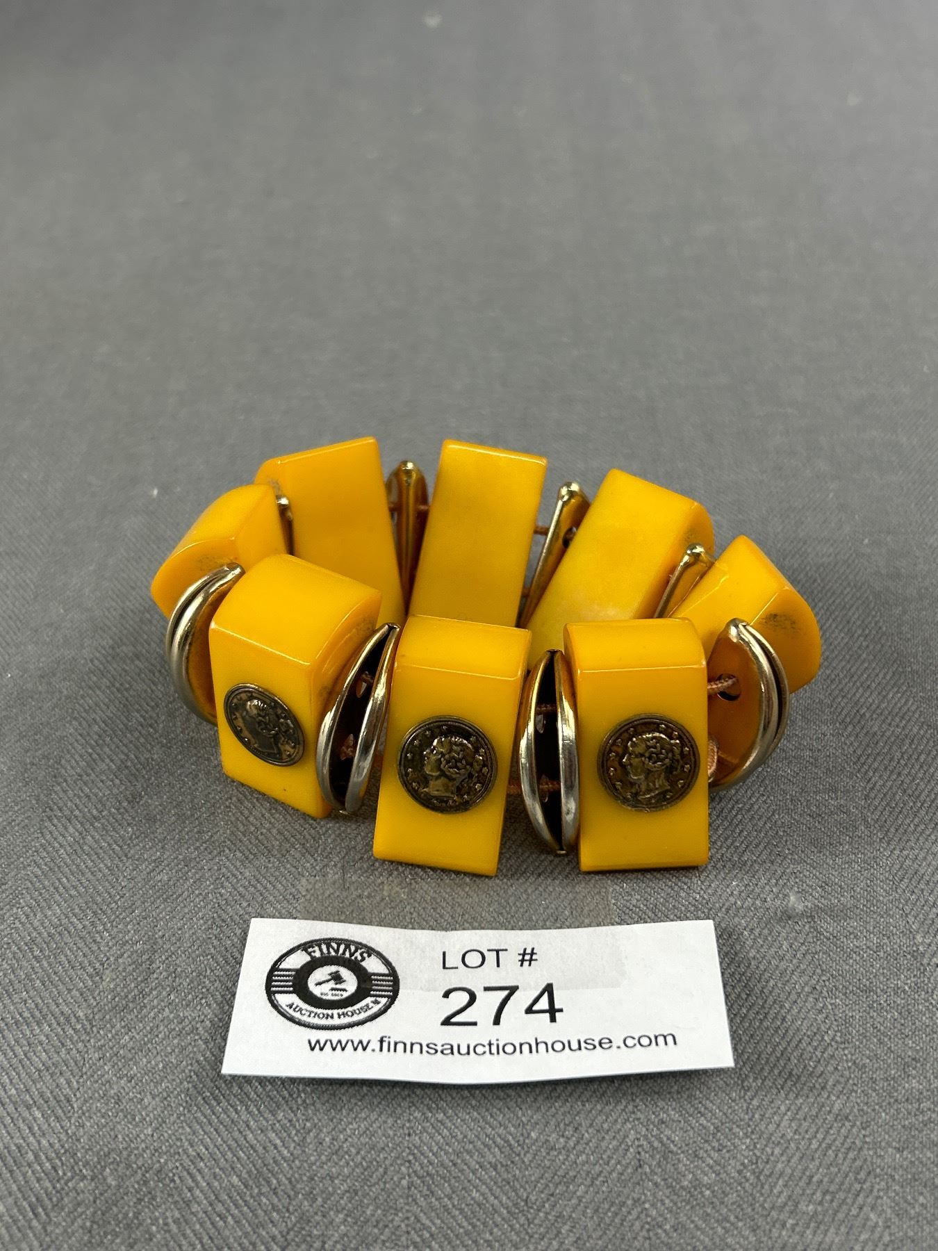 Outstanding Vintage Butterscotch Bakelite Bracelet, Slightly Loose as Found