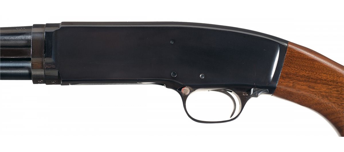 This is an excellent example of a Winchester Model 42 shotgun manufactured in 1956. It has a single steel bead front sight, is choked modified and has a 3 inch chamber. The Winchester proof is stamped on the top of the receiver and barrel over the breech area. It is mounted on a 14 groove flat bottom walnut forearm and smooth pistol grip stock with checkered plastic buttplate. Length of pull is 13 7/8 inches.