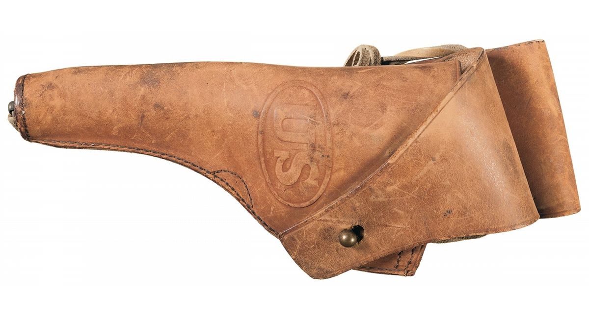 Excellent. The revolver retains 99% plus original blue finish showing some very scattered minor scratches and a faint cylinder drag line. The hammer and trigger retain most of the vivid original case colors. The grips are excellent with a few minor handling marks. The holster is excellent as issued.