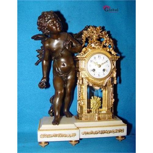 THIS INCREDIBLE MANTEL CLOCK IS HIGH END CLASSIC ELEGANCE AT ITS VERY FINEST!!Take a moment and get a look at one of the most fabulous antique mantel clocks we have had the pleasure to offer for auction in some time!This fantastic clock dates from the third quarter of the 19th C. (c. 1870).This clock is everywhere, and on every chimney an absolutely eye catcher, and a real collector piece that you will never get again.The dimensions are: Height: 19 Inches, Width: 12,5 Inches and Depth: 6 Inches.The mantel clock is made of a high-quality tin zinc alloy and the patina is gorgeous.The clock case is gilt and the cherub of 15 Inches tall has a gorgeous brown patina!The glass before the pendulum is beveled.The movement is stamped with " Mougin Deux Medailles".Good running and striking condition with 8 days going work and the 1/1 and 1/2 hours striking on a silvered bell. This fantastc mantel clock came out a very fine estate in the South of France near Marseilles.This clock is the ultimate way to bring some high end style to your decor!Regarding shipping we will pack the clock in a wooden crate so you will receive it without damage. Shippingscosts to the U.S.A. are 200 US$. After payment you will receive the clock in about 4 days.This is a very nice clock for the collector or someone wanting an unusual bronze gilted clock that no one else has!!Thank you for looking this marvelous mantel clock.Sincerely,Wil Tegenbosch,Global Antiques Holland.