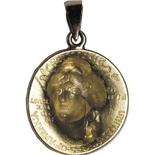 <B>Outstanding and Rare Indian Gold Quarter Eagle With Pop-Out Head.</B></I> Gold, 18 mm. Indian Head quarter eagle (two and a half dollar) gold coin with the head of Liberty pop-out. This may have been made at the Pan-Pacific Exposition held in California in 1915. This is the first gold pop-out we have seen.<BR><BR><b>Shipping:</b> Coins & Currency (<a target="_blank" href="http://www.heritageauctions.com/common/shipping.php">view shipping information</a>)