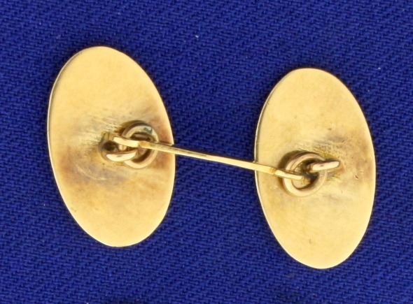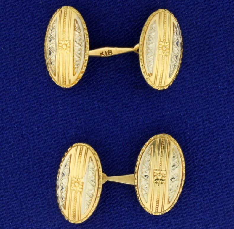 In 18k yellow and white gold, 5/8 inch long oval. Beautiful design. 7.4g.