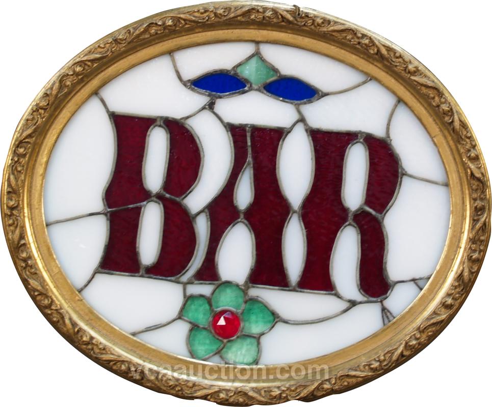 Oval "BAR" Stained Glass Window in ornate frame - 23" x 19"