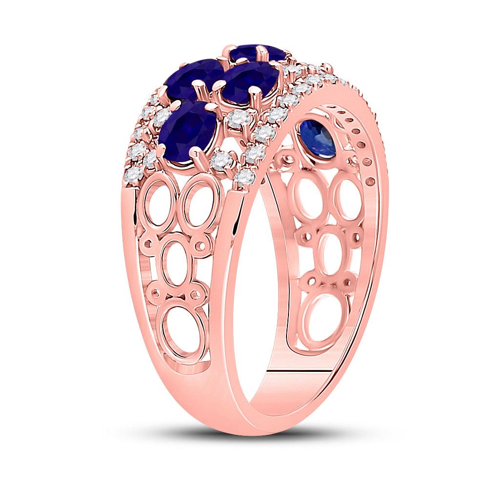 14kt Rose Gold Womens Oval Blue Sapphire Diamond Band Ring 1-7/8 Cttw