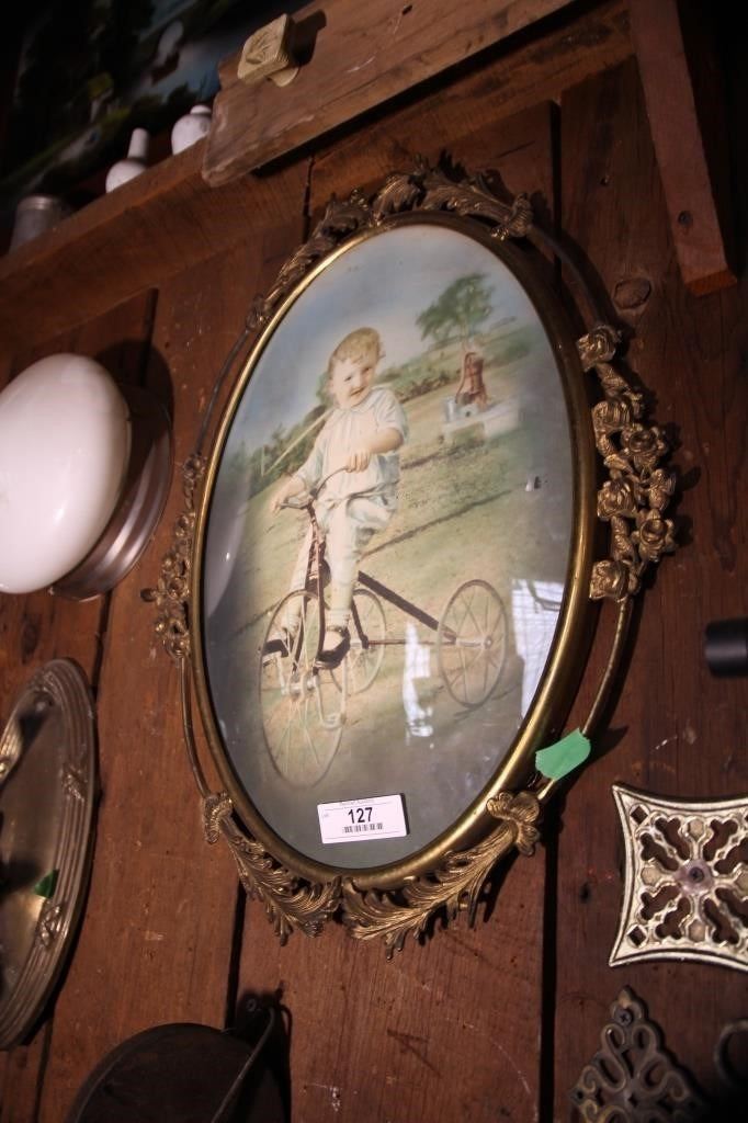 Hand Tinted Of A Boy On A Trike approx. 23" x19" W (not frame)