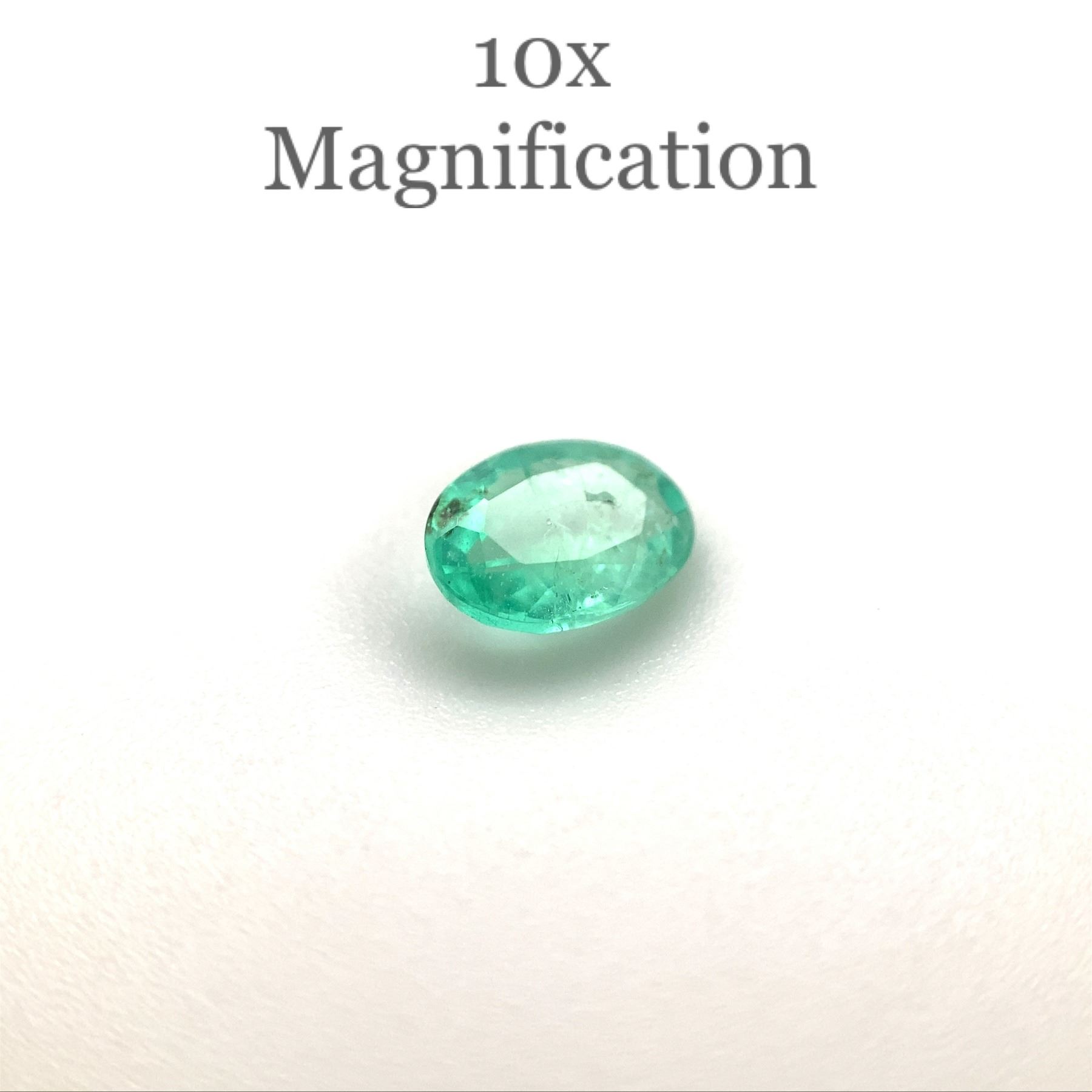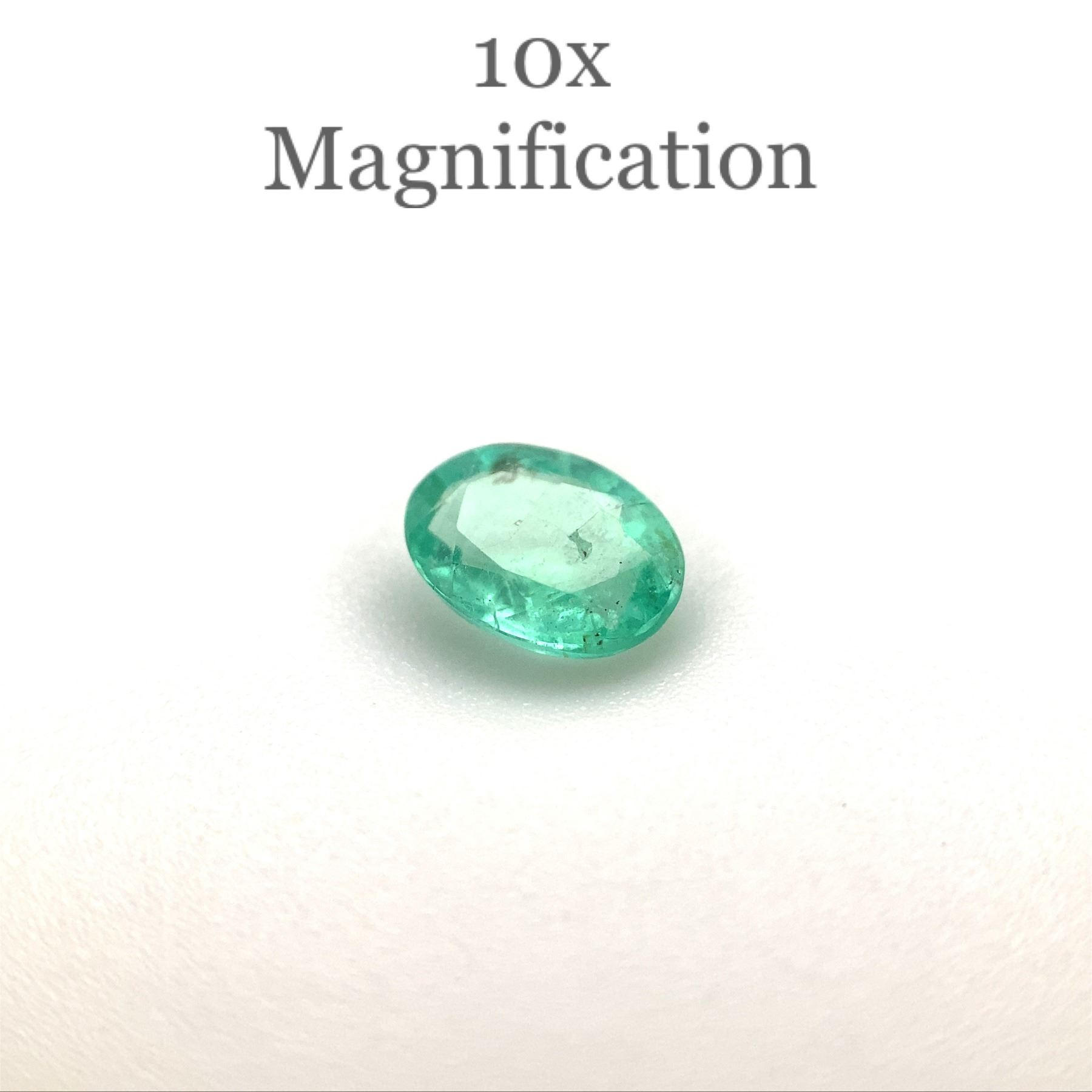 Weight: 0.53 cts Shape: Oval Measurements: 6.40 x 4.70 x 2.60 mm Color: Green Clarity: Moderately Included: Inclusions easily visible to the naked/unaided eye. Treatment: Clarity Enhanced with Colorless Oil Only *All Emeralds are Assumed to be Clarity Enhanced Origin: Zambia.