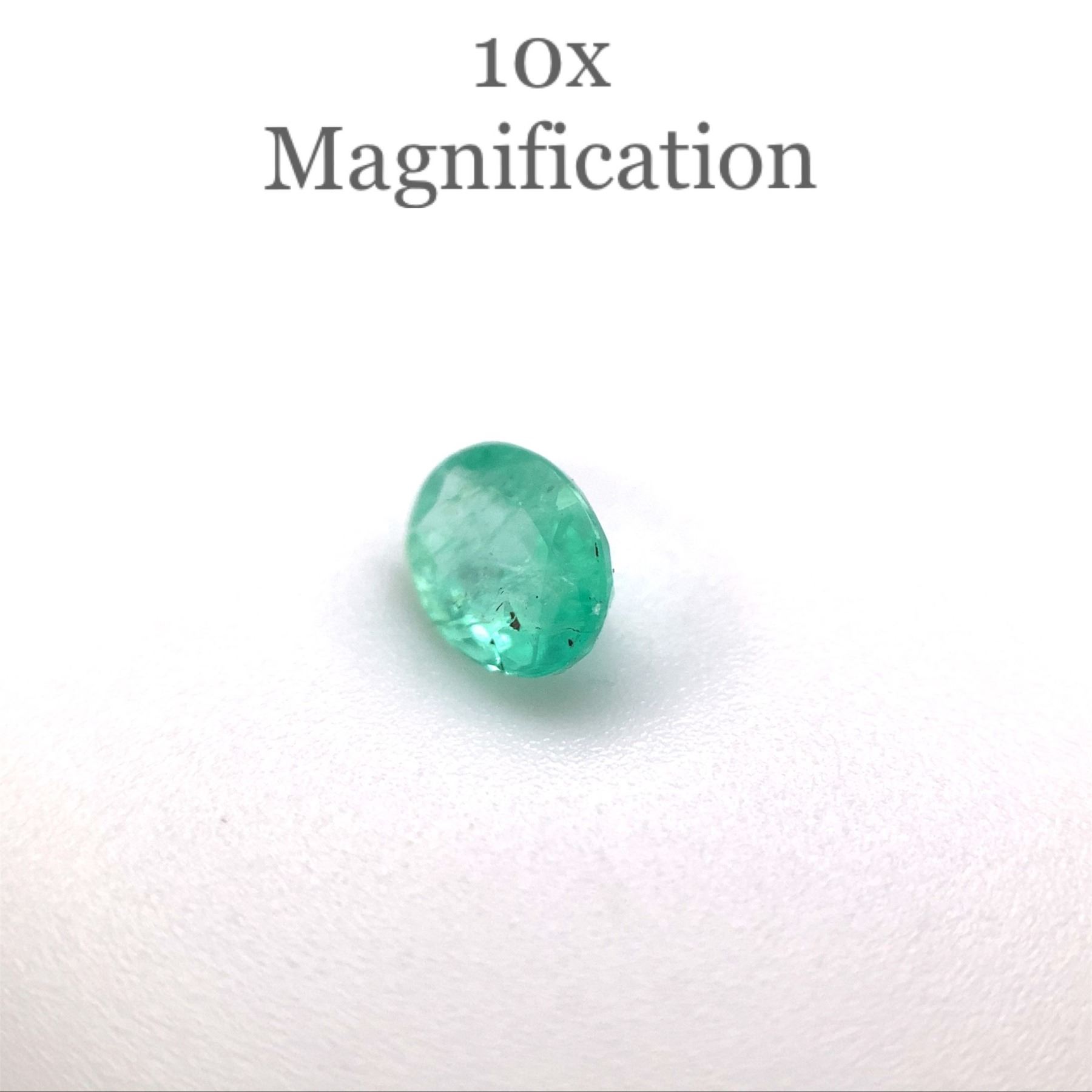 Weight: 0.55 cts Shape: Oval Measurements: 6.10 x 4.50 x 3.90 mm Color: Green Clarity: Moderately Included: Inclusions easily visible to the naked/unaided eye. Treatment: Clarity Enhanced with Colorless Oil Only *All Emeralds are Assumed to be Clarity Enhanced Origin: Zambia.