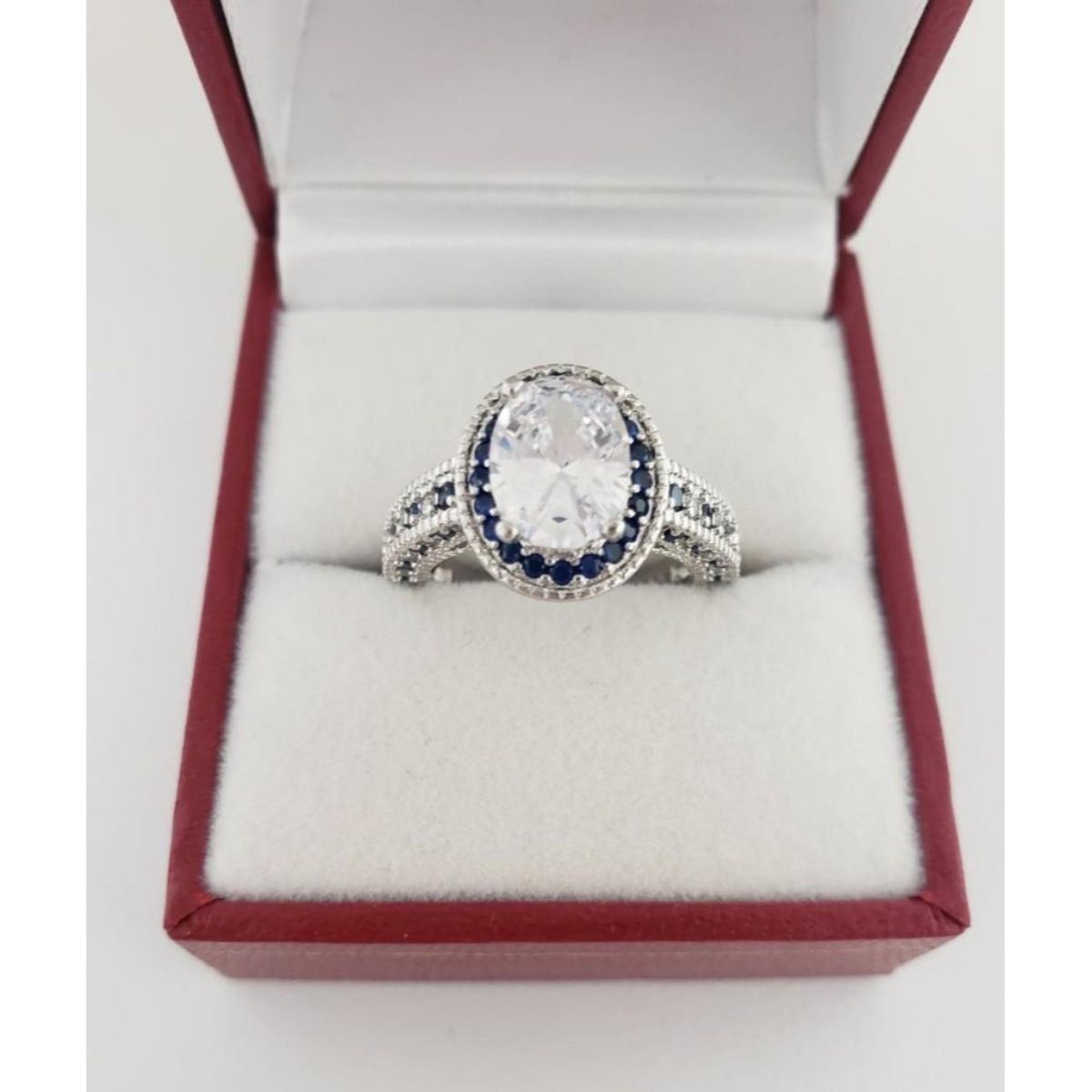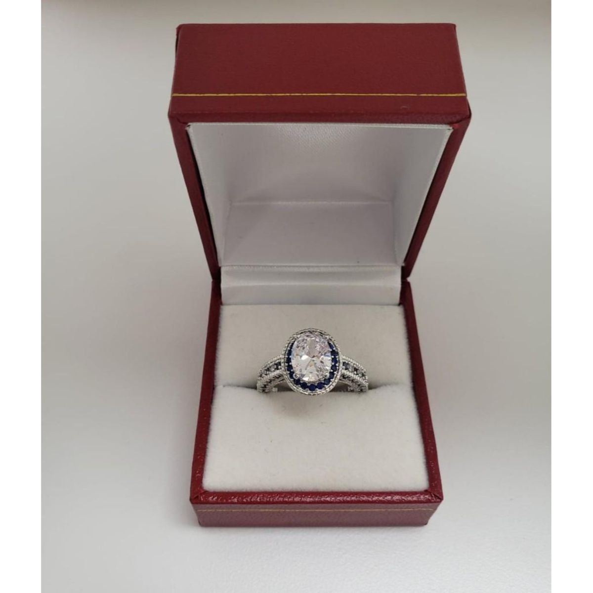 Oval Cut CZ Diamond Main Stone Mounted On Sterling Silver 925 Ring. Ladies Size 6. Please View Photos For Further Details.Â