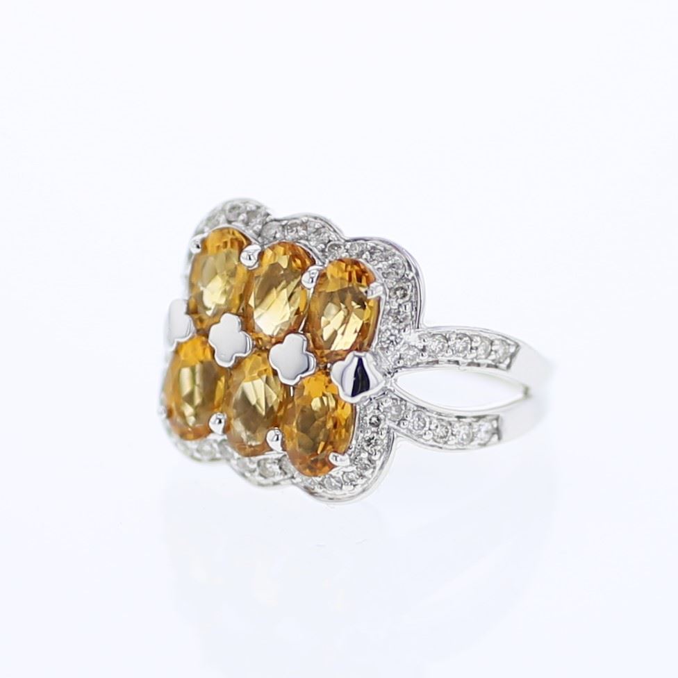 Oval-cut Prong-set Citrine Diamond Ring in 14K White Gold | 272867 6.5 Grams, featuring 2.62 White Diamond Round ct 6 0.5 ct 52 ct 14 ct