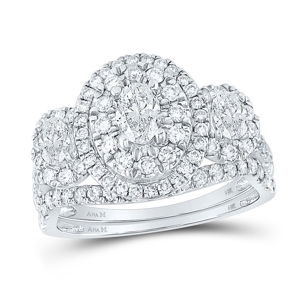 14kt White Gold Oval Diamond Bridal Wedding Ring Band Set 1-1/2 Cttw