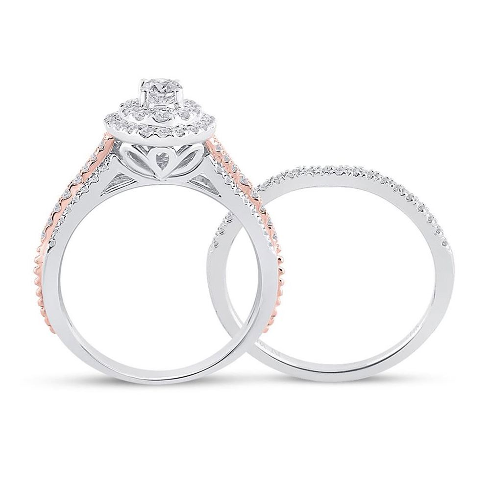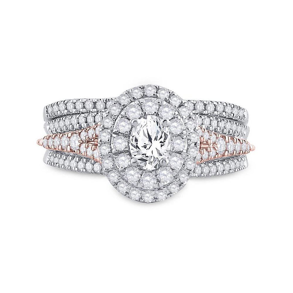 14kt Two-tone Gold Oval Diamond Bridal Wedding Ring Band Set 1 Cttw