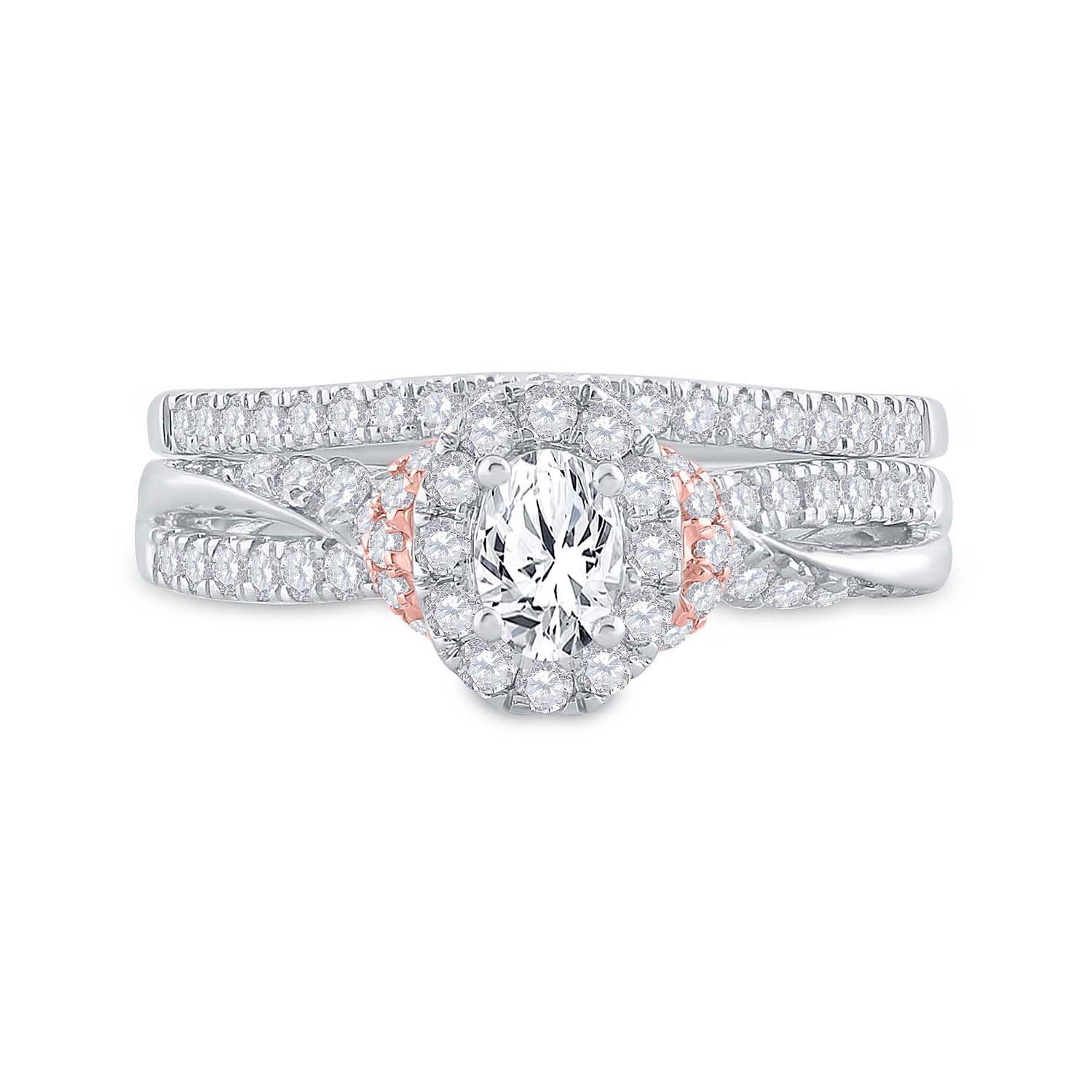 14kt Two-tone Gold Oval Diamond Bridal Wedding Ring Band Set 1 Cttw