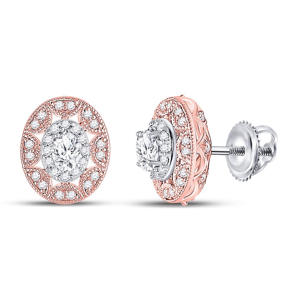 Oval Diamond Halo Earrings 1/2 Cttw 14KT Two-tone Gold