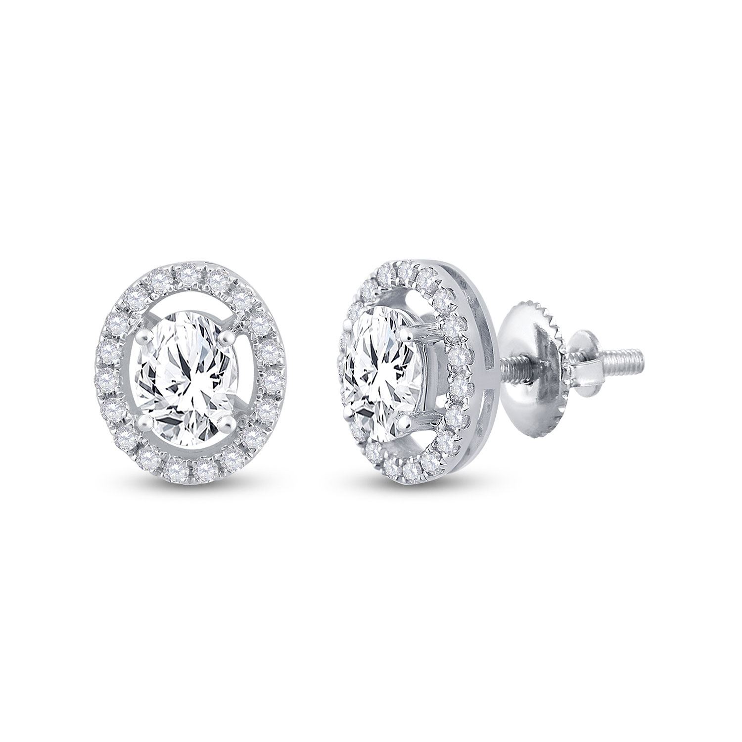 14kt White Gold Womens Oval Diamond Solitaire Stud Earrings 1-1/4 Cttw