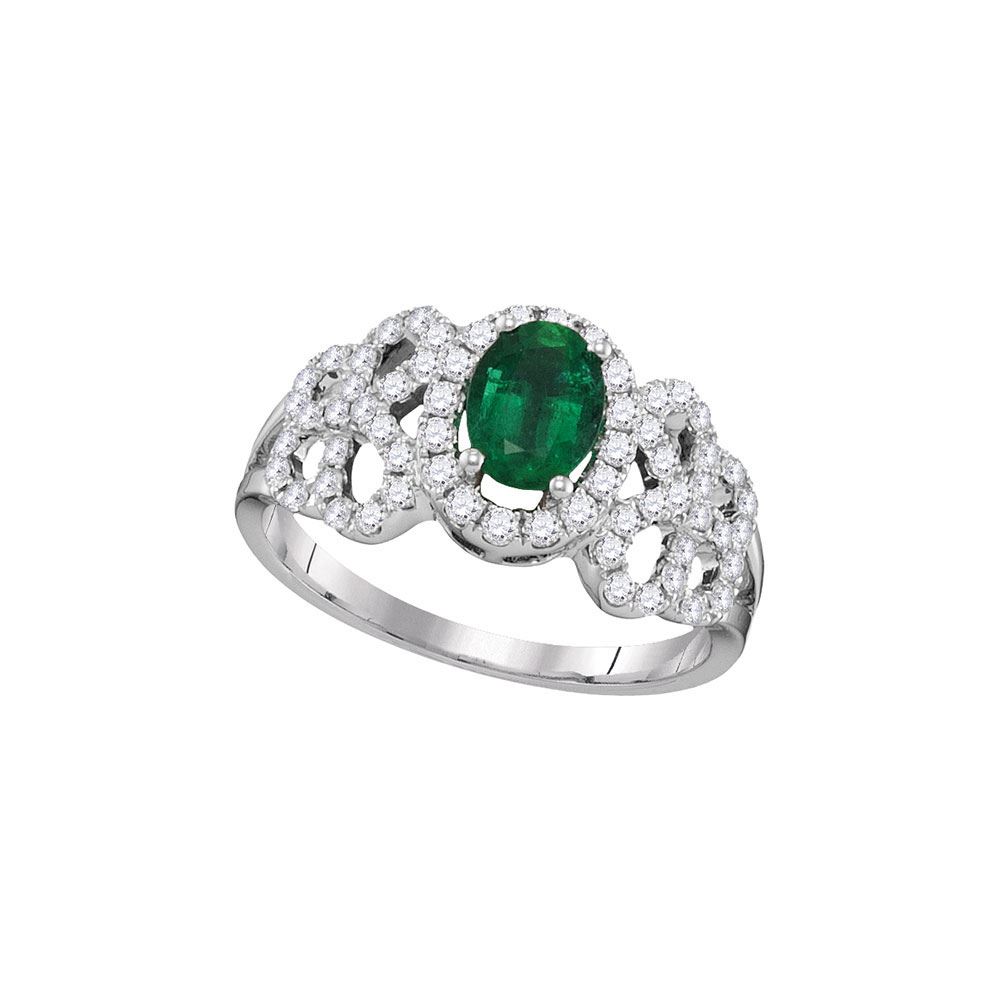 REF-197V3A - SKU: GD108007 ---- Oval Emerald Solitaire Diamond-accent Ring 1.00 Cttw 18kt White Gold