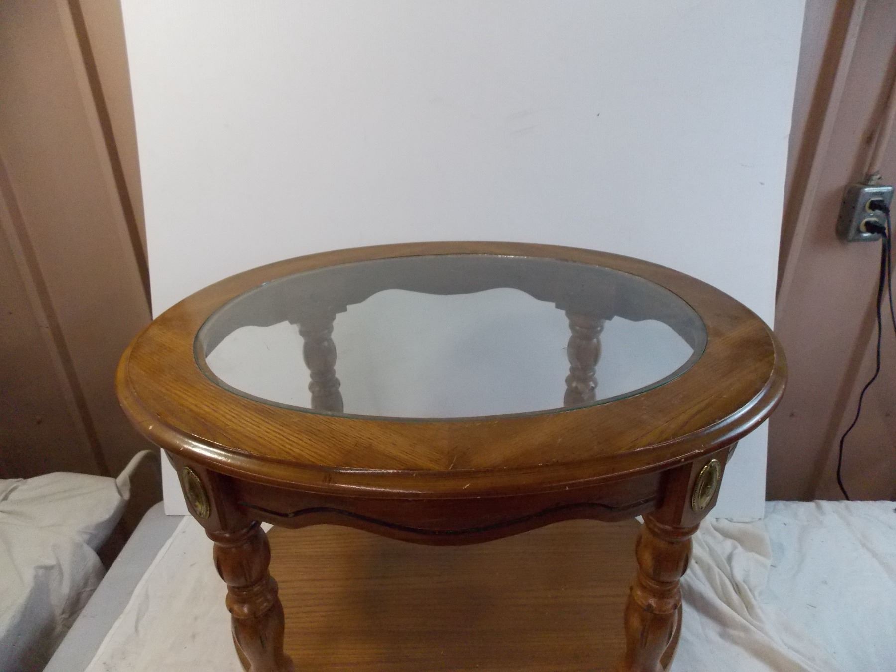 *Oval End table with glass top - 28" x 22" x20" Tall