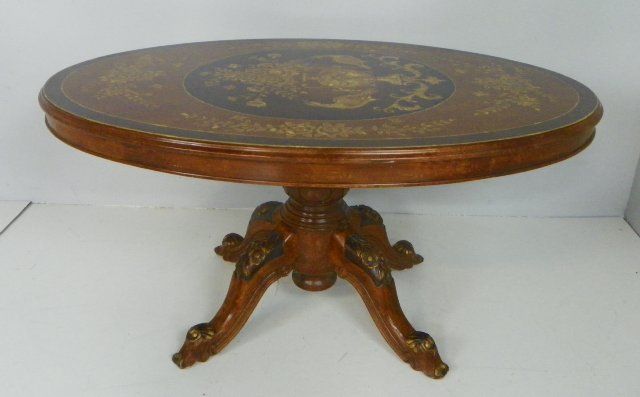 With 2" banding, claw feet, ca. 1930-1940. Approx. 33.5" x 38" W. Please read our terms of sale.