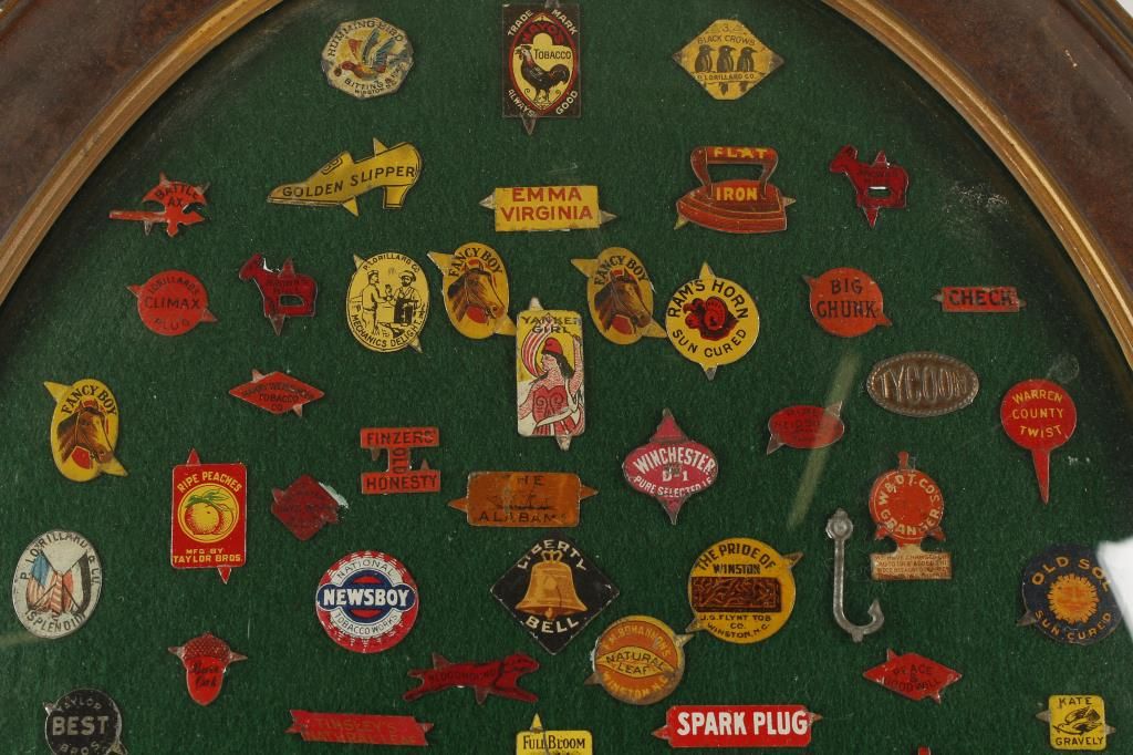 16-1/2" wide x 22-1/2" high. Tags are from various makers including Jolly Tar, Spark Plug, Fancy Boy, Flat Iron, and more.