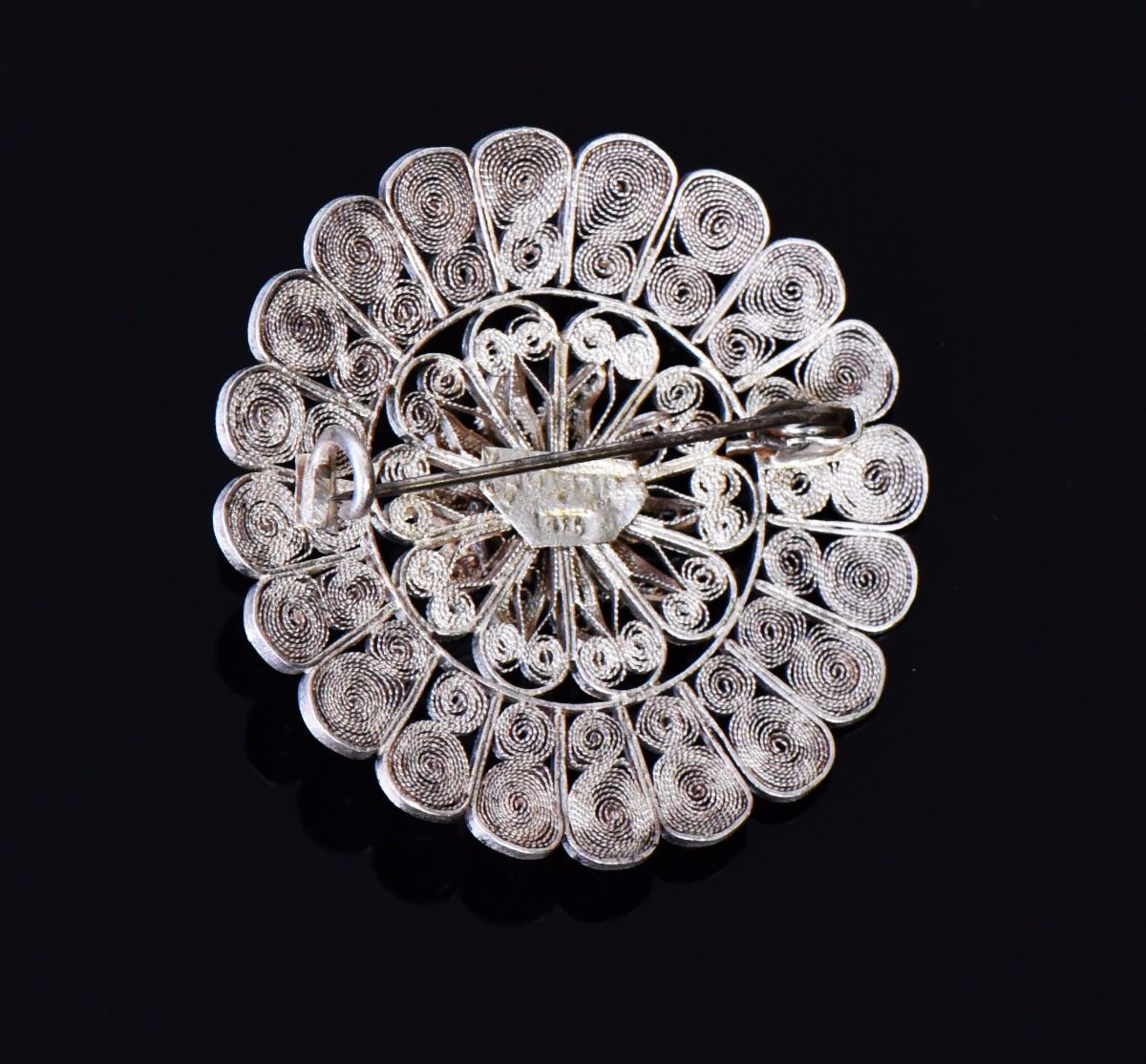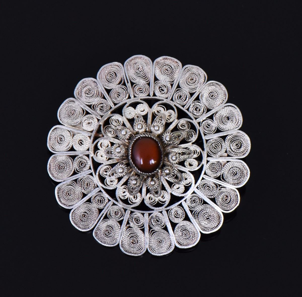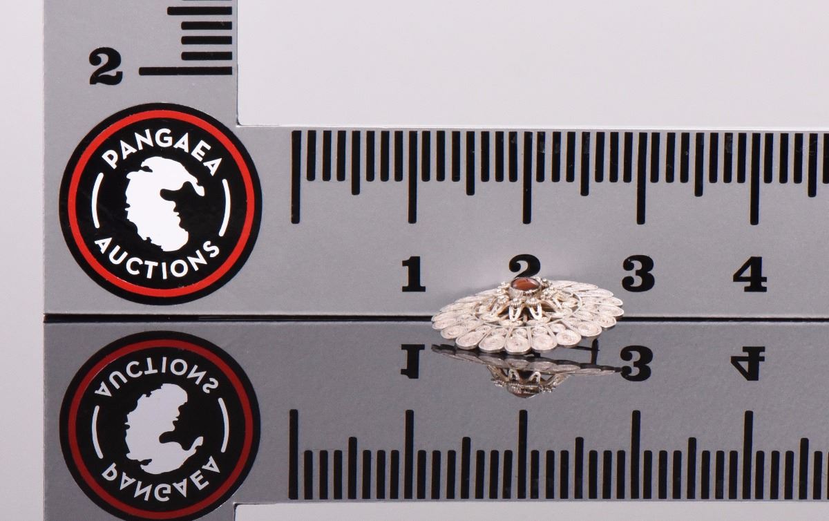 Oval Garnet Silver Filigree Brooch. Estimated more than 50 yrs old. 925 Sterling Silver consisting of 92.5% silver and 7.5% copper. Tested Positive using Nitric Acid Chemical Scratch Test, Cloth Rub Test, Smell Test, and Magnet Test. No Markings. The reason silver needs to be combined with other metals is that it is very difficult to make great designs with just pure silver, which is very soft and malleable. A bit of hardness has to be introduced by adding other metals such as copper. That is why jewelers are capable of making the most intricate an complex designs with 925 Sterling Silver. Silver is one of the most valuable elements next to gold. Mexico is the leading producer of sliver, followed by the United States, Canada, Australia, Spain, Peru, and Russia. Many countries do not require their precious metal items to be stamped and therefore we test to ensure we accurately represent the product. Size: See Ruler Photo. (Photos Represent The Condition Of The Lot.)