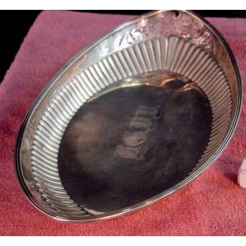 Old Gorham markings with the number A4087 and James Mix stamped under the marking, ribbed sides with pierced work ends and lined border, several small dents in the flat bottom from use, old monogram of LCVV from the Van Vleck family of New York. 12 1/4" long by 6 1/4" wide by 1 3/4" tall.